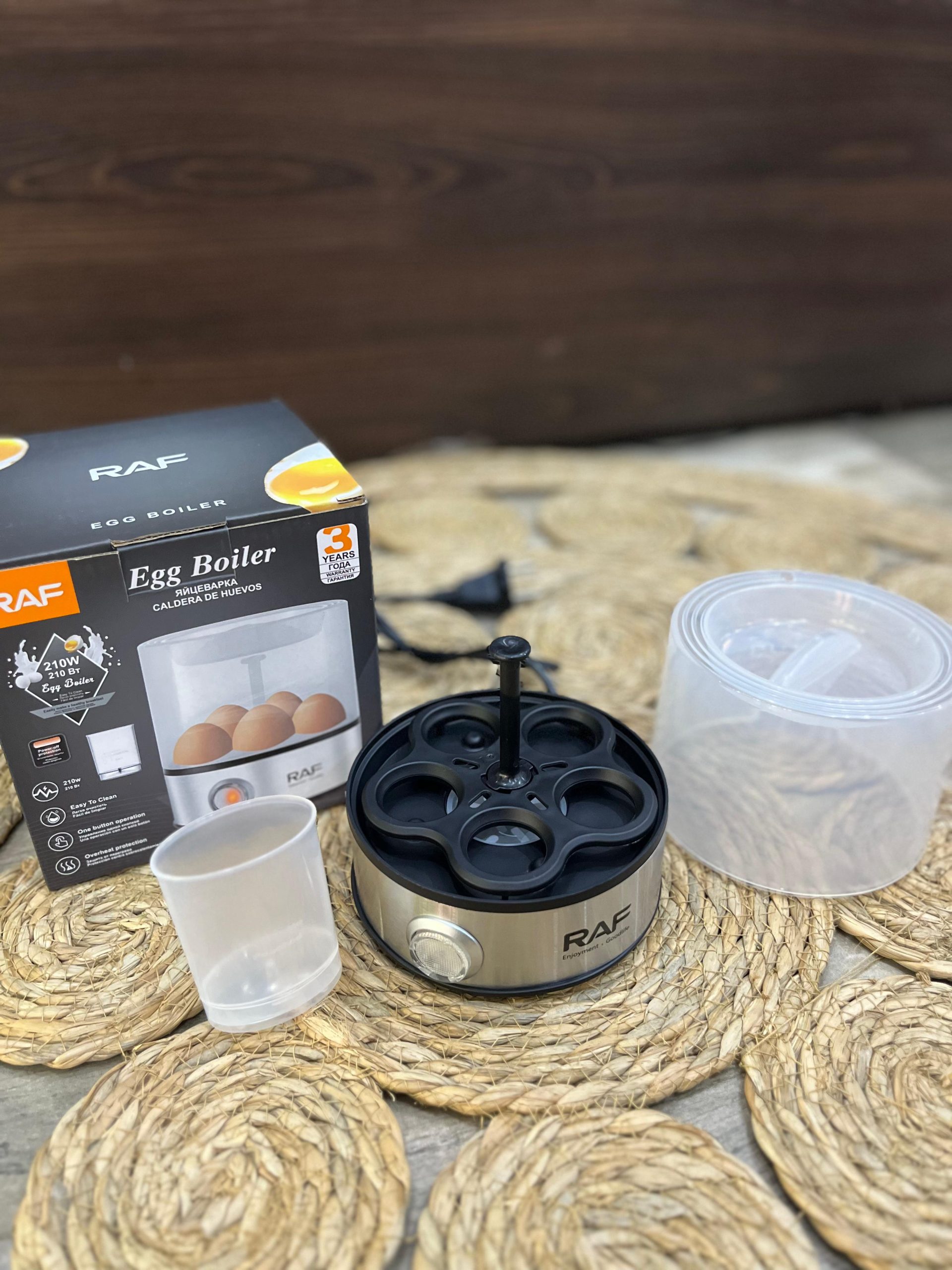 Cocedor de huevos Raf, cocina huevos perfectos de forma rápida y sencilla. Ideal para desayunos y comidas nutritivas. Diseño compacto y fácil de usar.