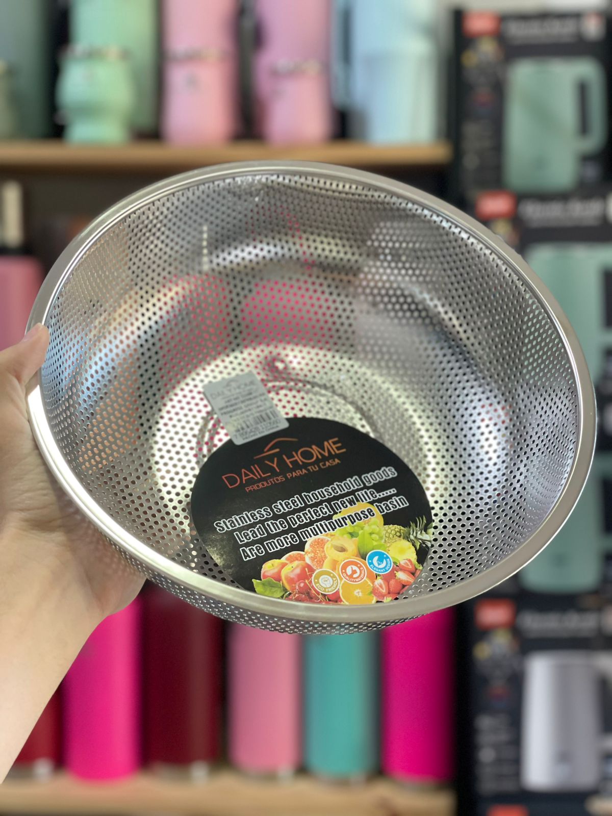 Colador de acero inoxidable premium, esencial para tu cocina. Filtra líquidos y sólidos con facilidad. Diseño duradero y resistente a la corrosión, ideal para pasta, verduras y más. Un utensilio práctico e higiénico que simplifica tus preparaciones diarias.