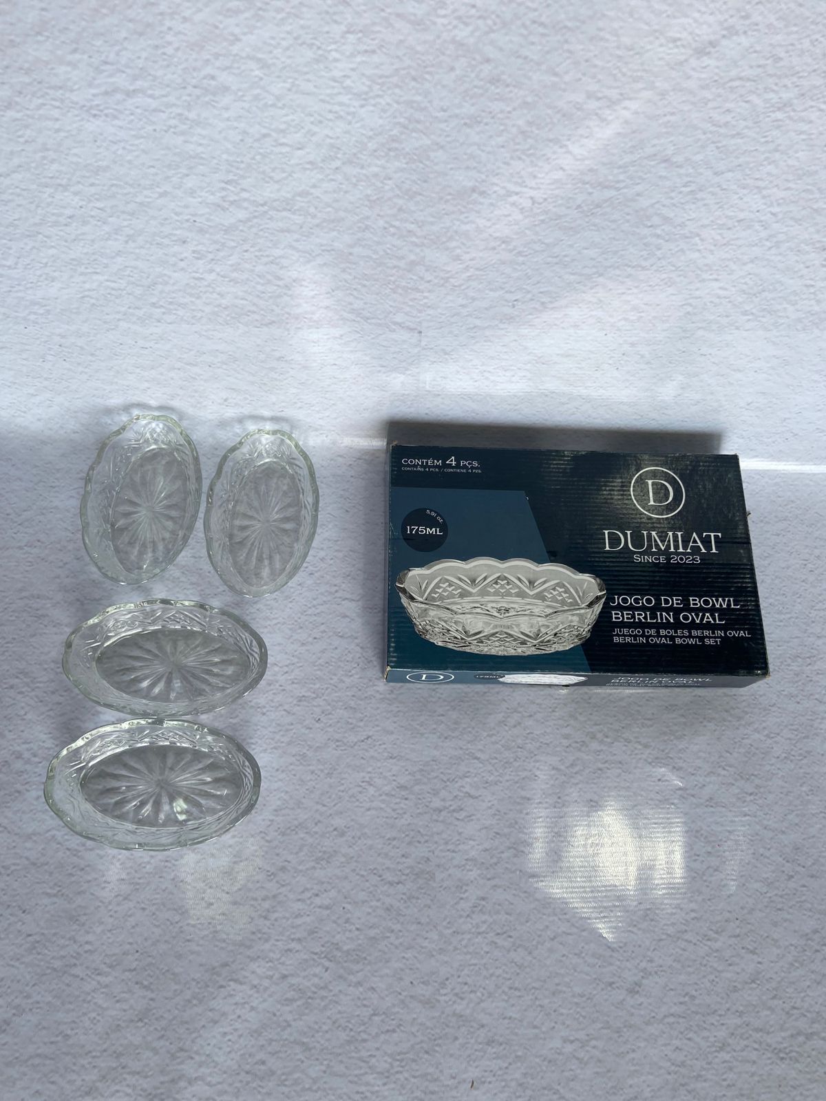 Elegante juego de compoteras de vidrio labrado. Ideal para postres y presentaciones especiales. Incluye 4 unidades.