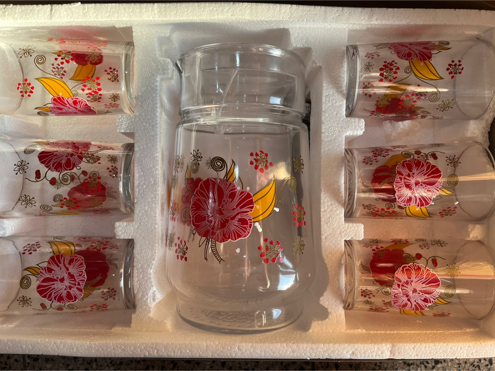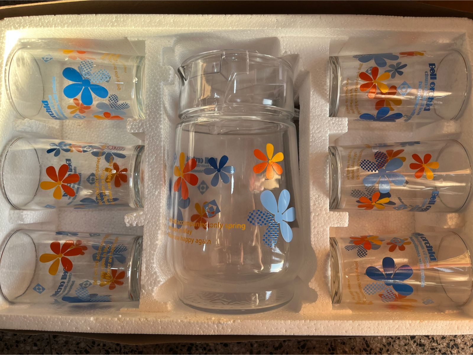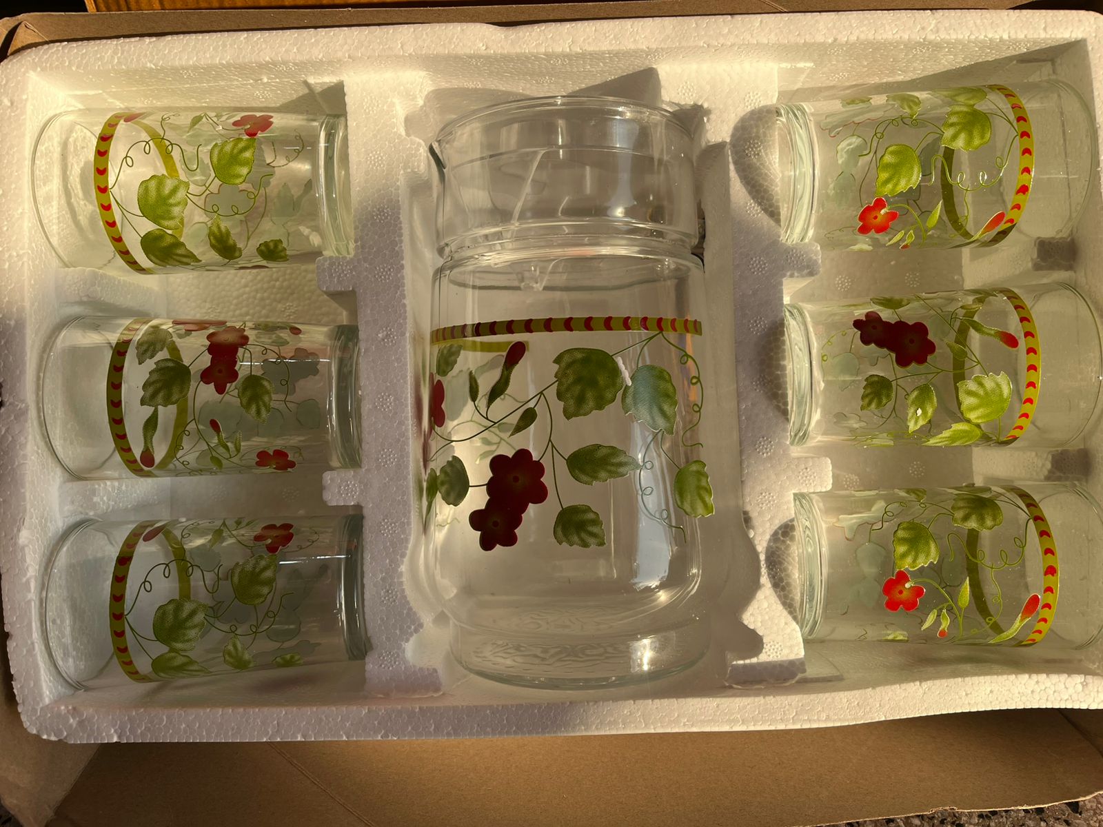 Elegante set de jarra de vidrio y 6 vasos, perfecto para servir bebidas con estilo. Ideal para agua, zumos o cócteles en cualquier ocasión. Diseño duradero y fácil de limpiar, realza tu mesa. Imprescindible en tu hogar para el día a día o eventos especiales. Añade un toque sofisticado a tu menaje.