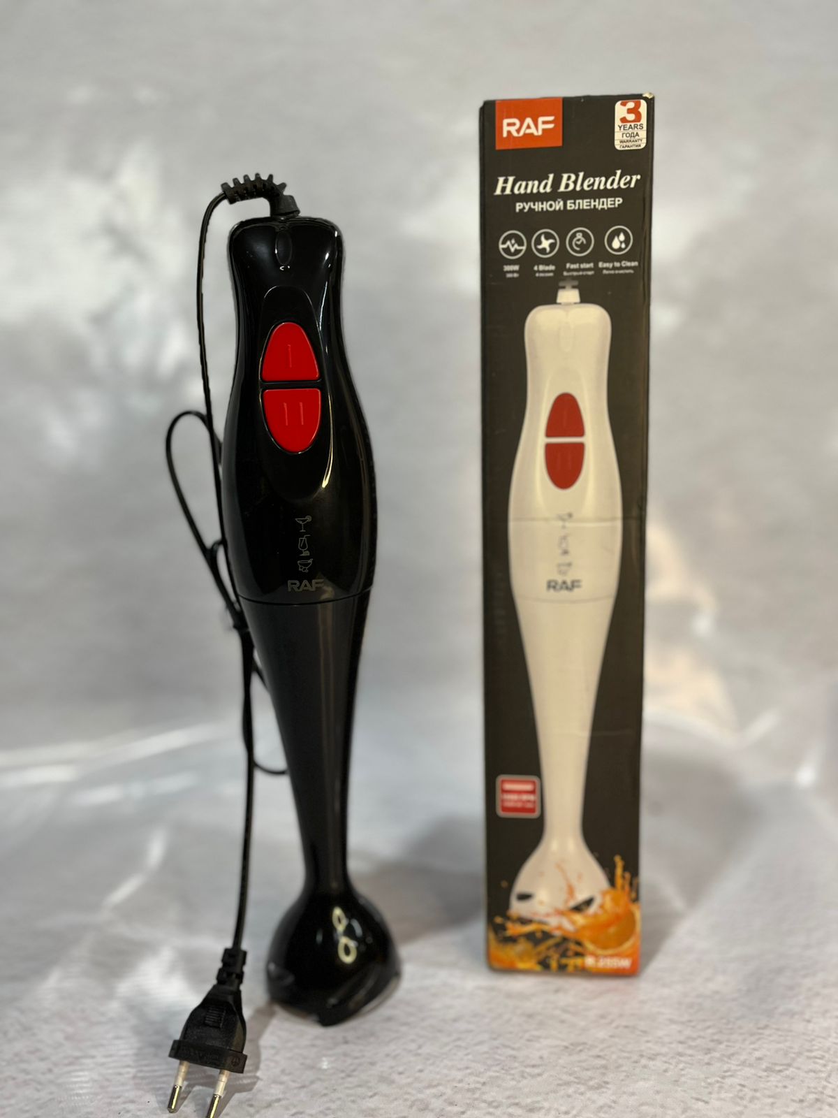 Mixer RAF 300W con 4 cuchillas para batidos y preparaciones rápidas. Compacta y eficiente.