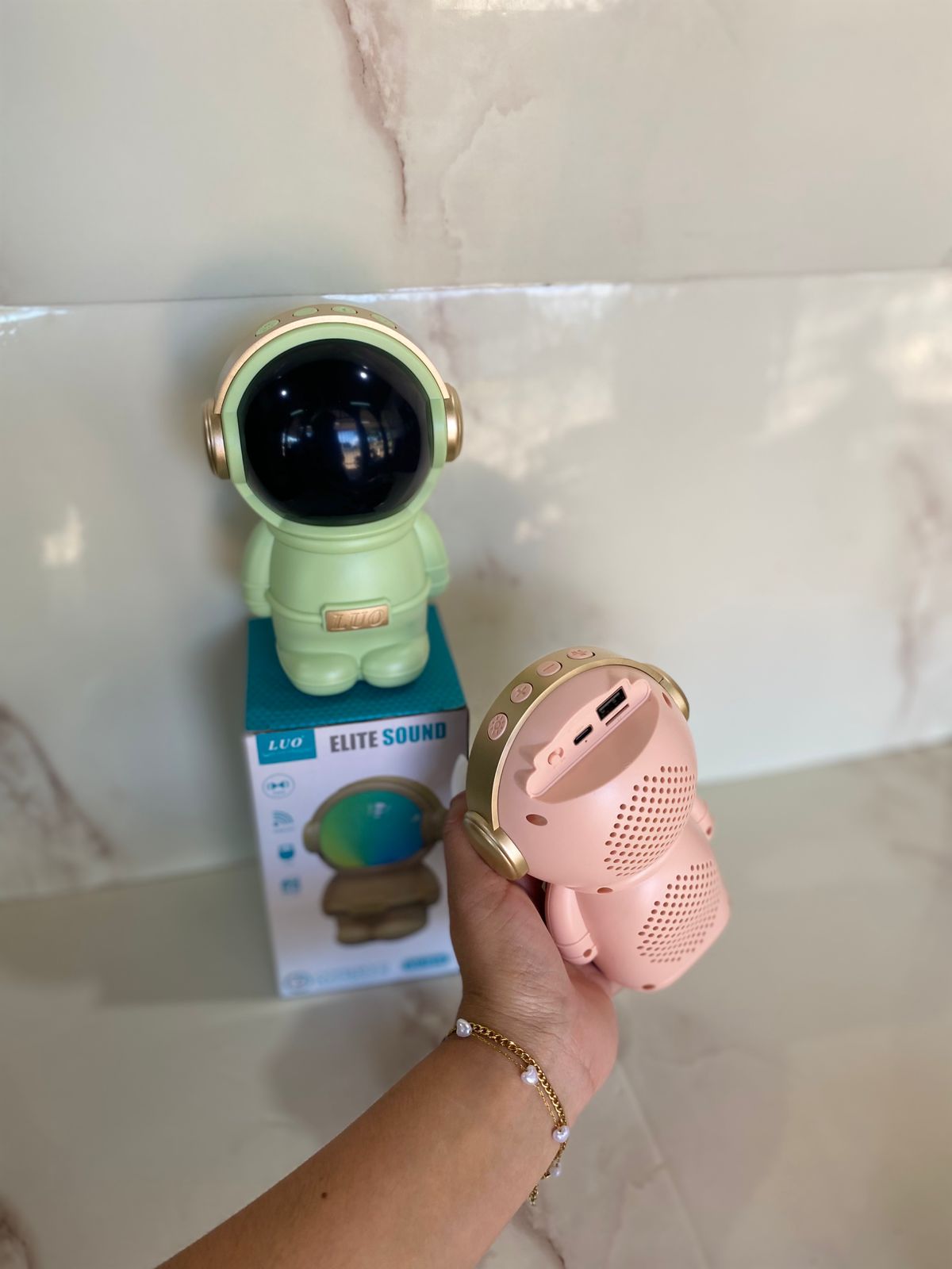 Parlante LUO astronauta con luces, ideal para ambientar cualquier espacio. Disfruta tu música vía USB o pendrive. Con diseño único y carga USB, perfecto para llevar y coleccionar.