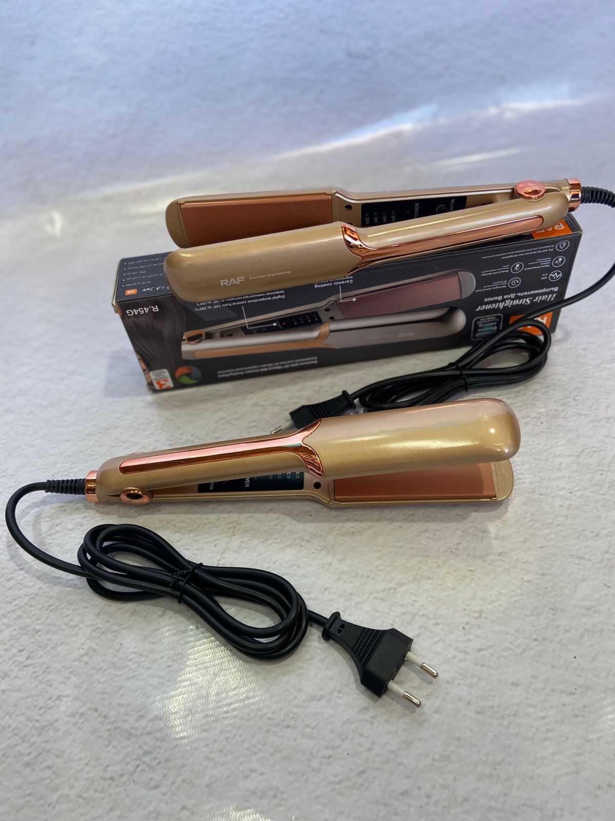 Planchita profesional RAF de 45W, ideal para un alisado rápido y eficaz. Alcanza 200° para un cabello liso y brillante. Compacta y fácil de usar, perfecta para tu rutina de belleza diaria y resultados impecables.
