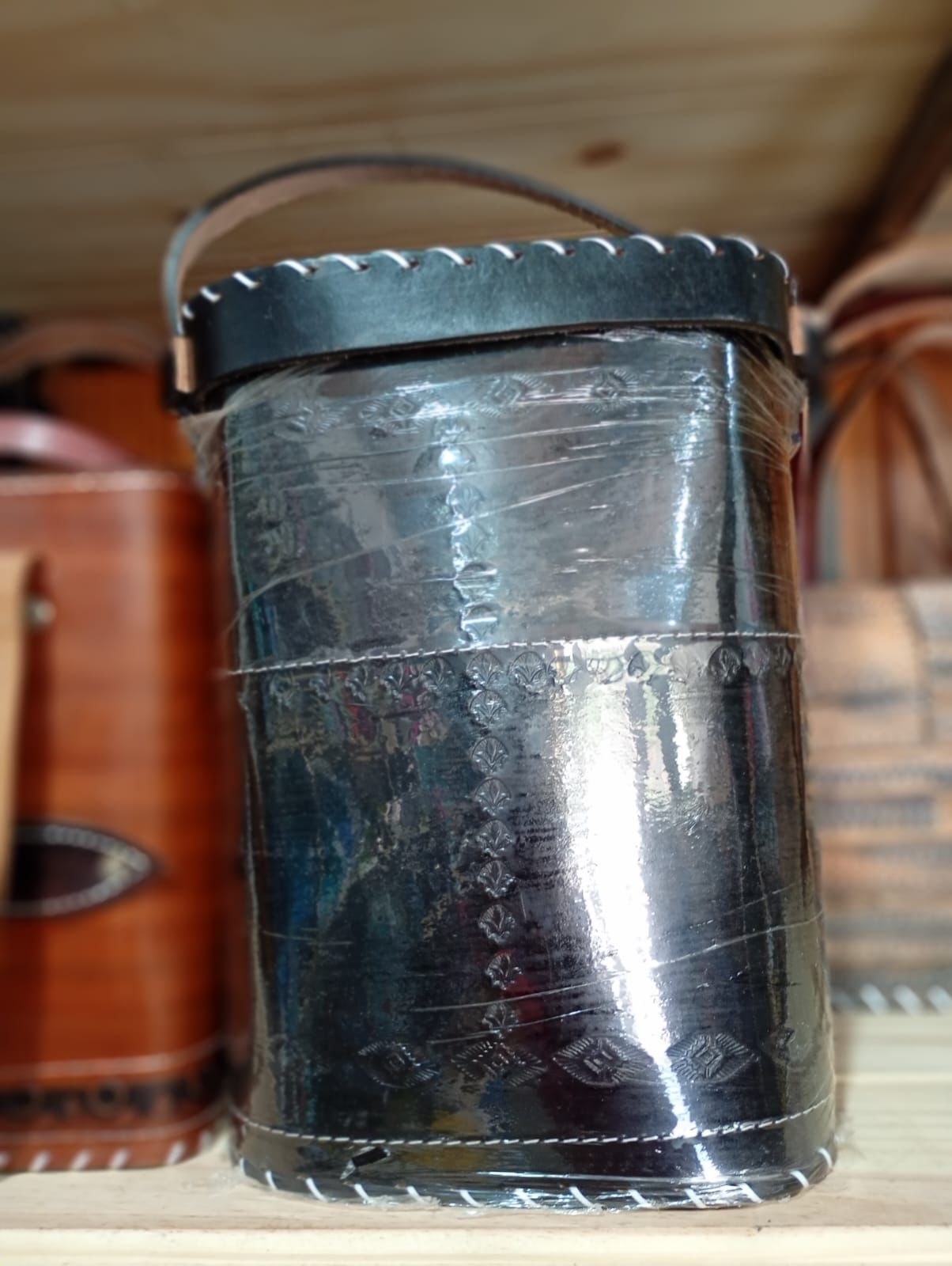 Elegante artículo de 100% cuero genuino con tapa, ideal para almacenamiento o como accesorio sofisticado. Perfecto para organizar objetos pequeños con estilo y durabilidad, añadiendo un toque de lujo a tu espacio.