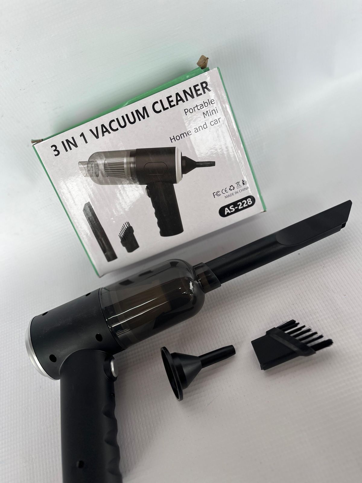 Aspiradora de mano 3 en 1, potente y versátil para limpieza doméstica. Incluye accesorios y cepillos para aspirar en todo tipo de superficies, muebles y el coche. Ligera y eficiente.