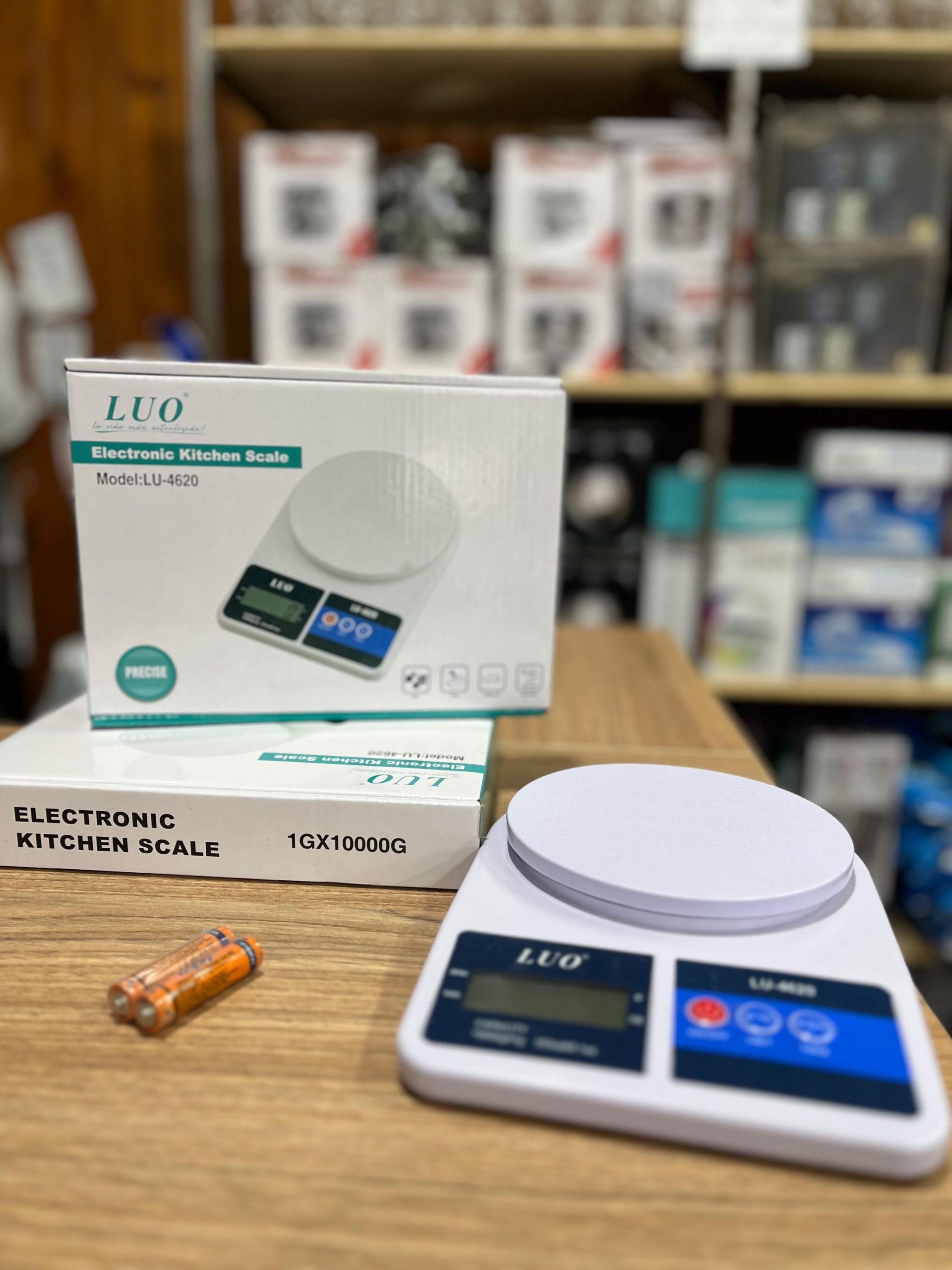 Balanza gramera LUO modelo LU-4620 con capacidad máxima de 10kg. Ideal para cocina, joyería, laboratorio o uso postal. Precisión en gramos, pantalla LCD clara y diseño compacto.