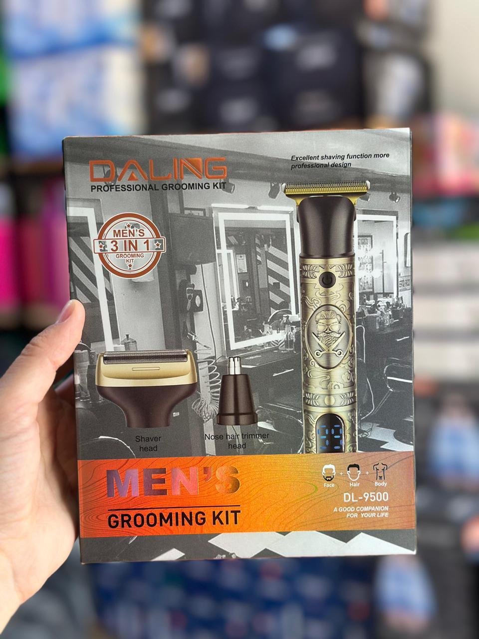 Barbeador eléctrico 3 en 1 para rostro, cabeza y cuerpo. Recargable USB, impermeable, con múltiples cabezales para un afeitado preciso y versátil.