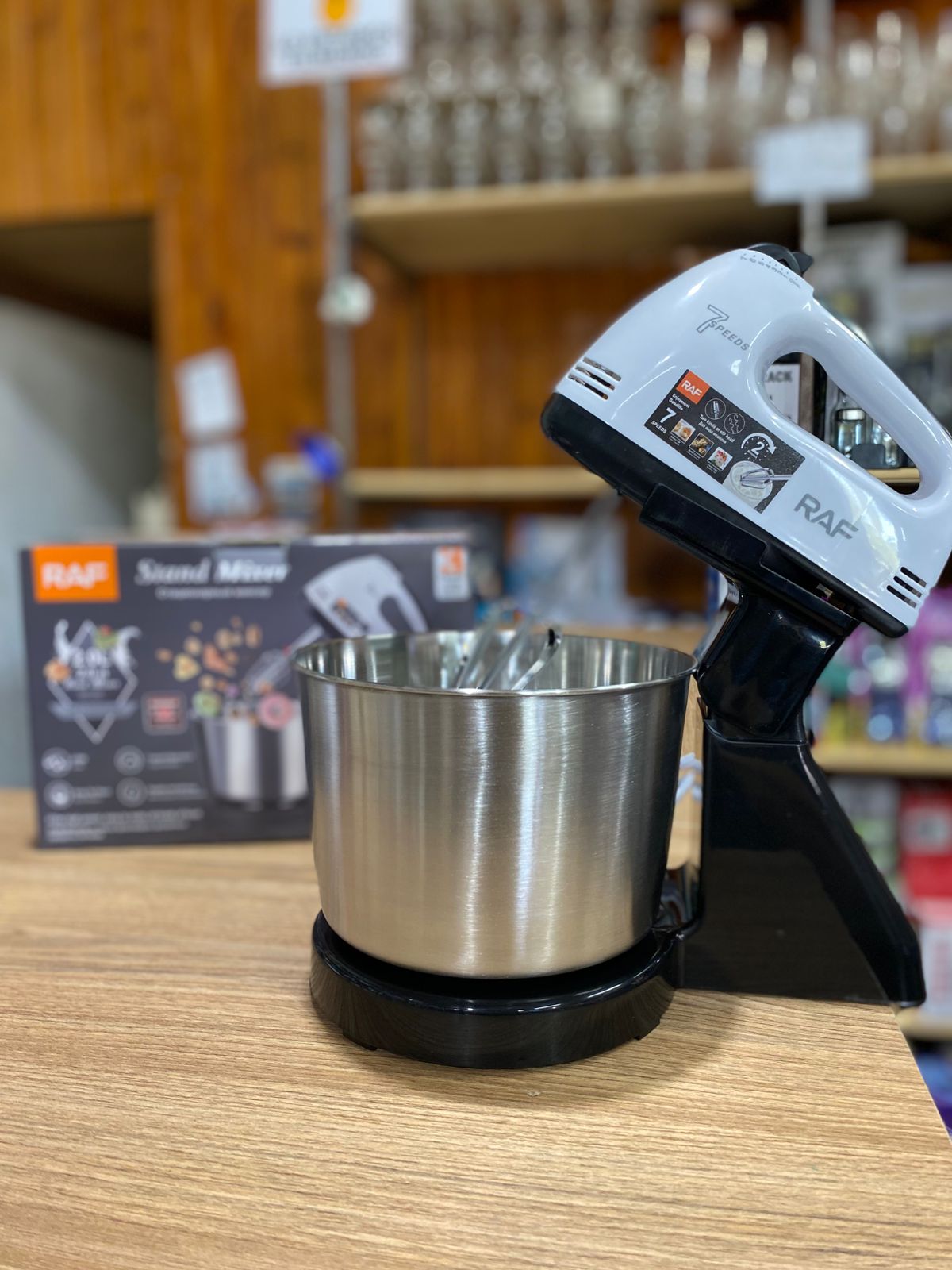 Batidora de pie RAF con bowl de acero inoxidable de 2 litros. Perfecta para mezclar, amasar y batir. Potente, duradera y fácil de limpiar. Ideal para repostería y cocina diaria.