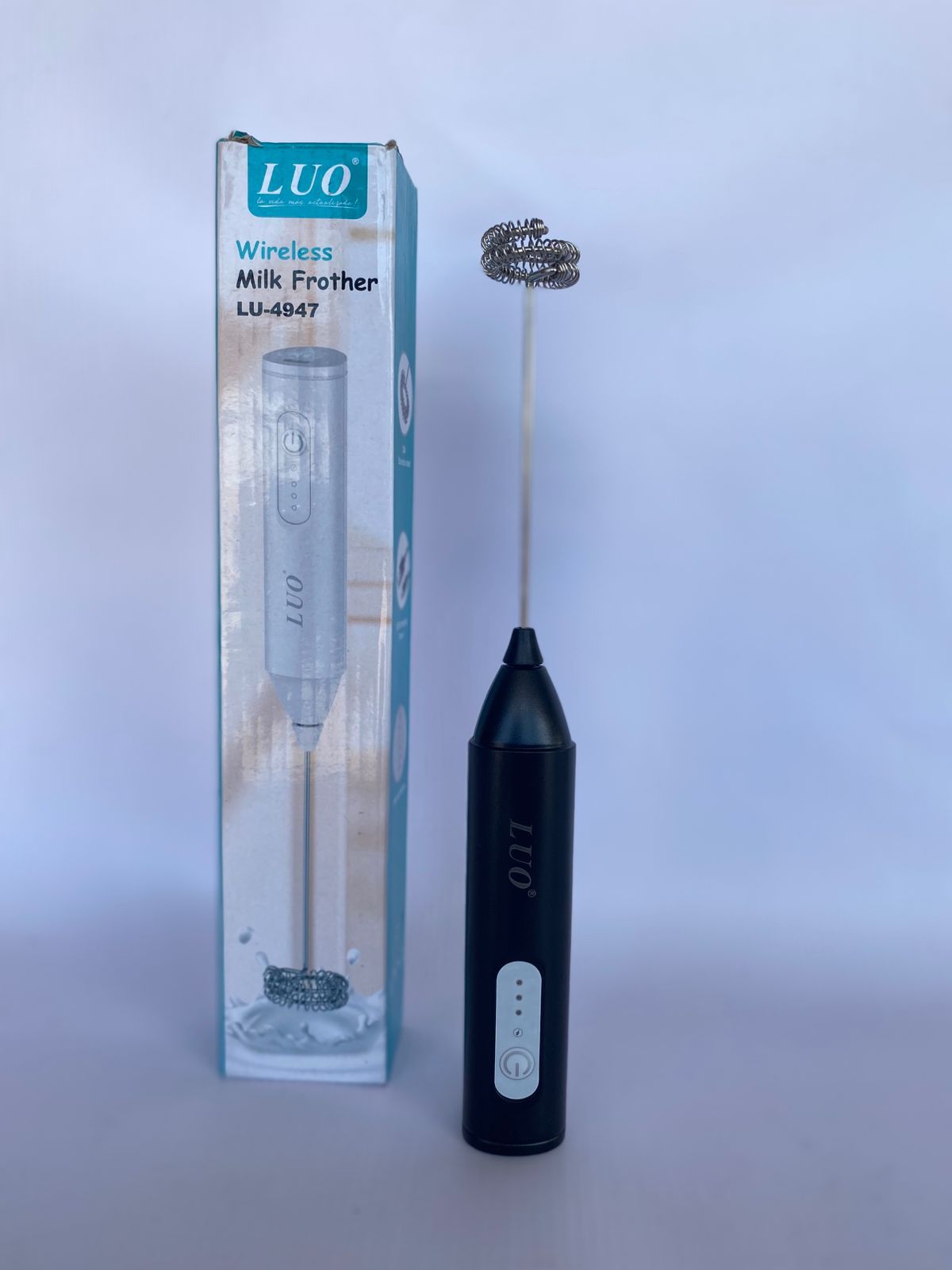 Batidora de café LUO inalámbrica con cargador USB. Perfecta para espumar leche y crear cafés cremosos en casa o la oficina. Compacta, recargable y fácil de usar.