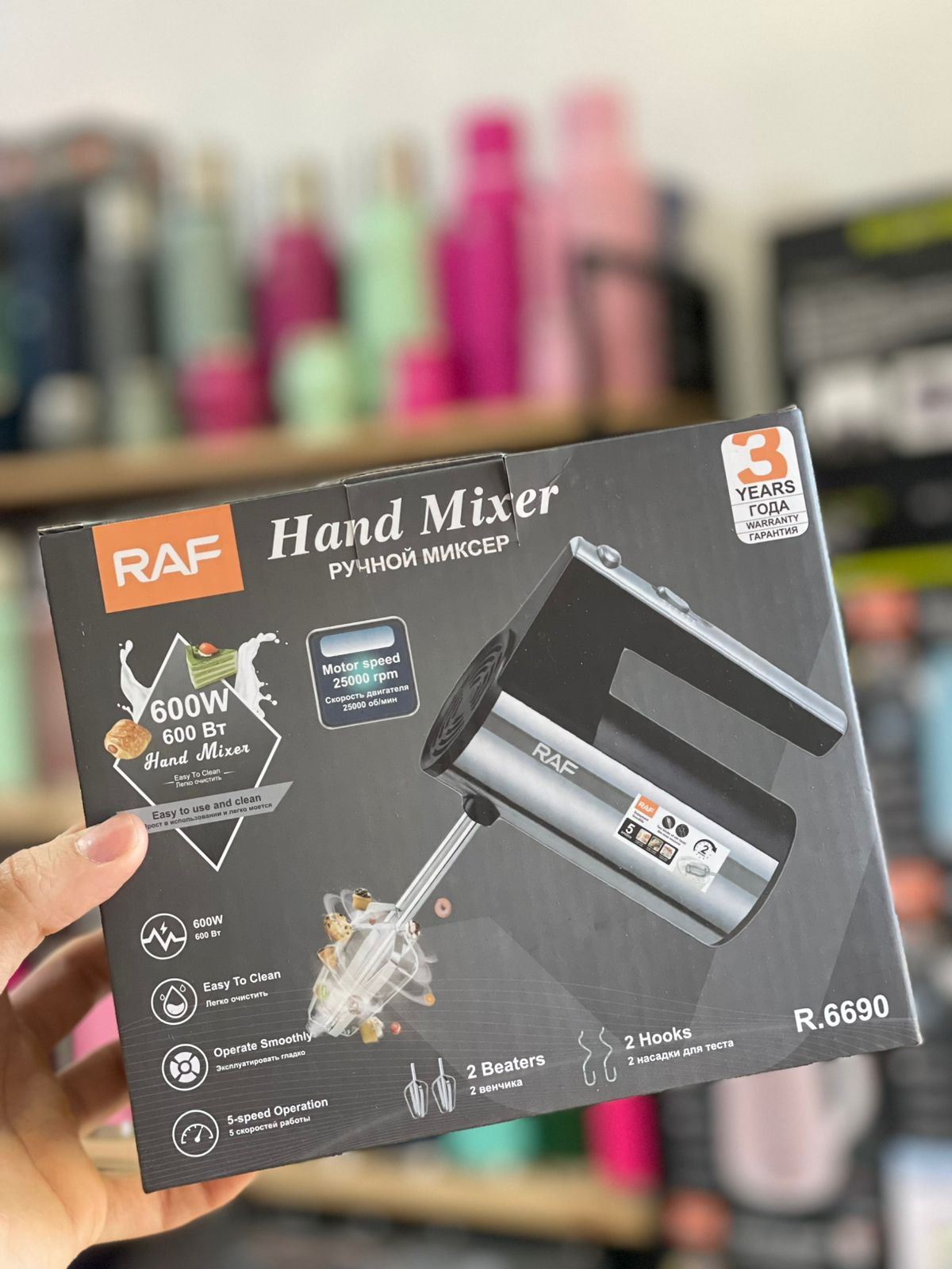 Batidora de mano profesional marca Raf. Potente motor para mezclar, batir y triturar. Ideal para cocina diaria, fácil de usar y limpiar. Perfecta para salsas, batidos y purés.