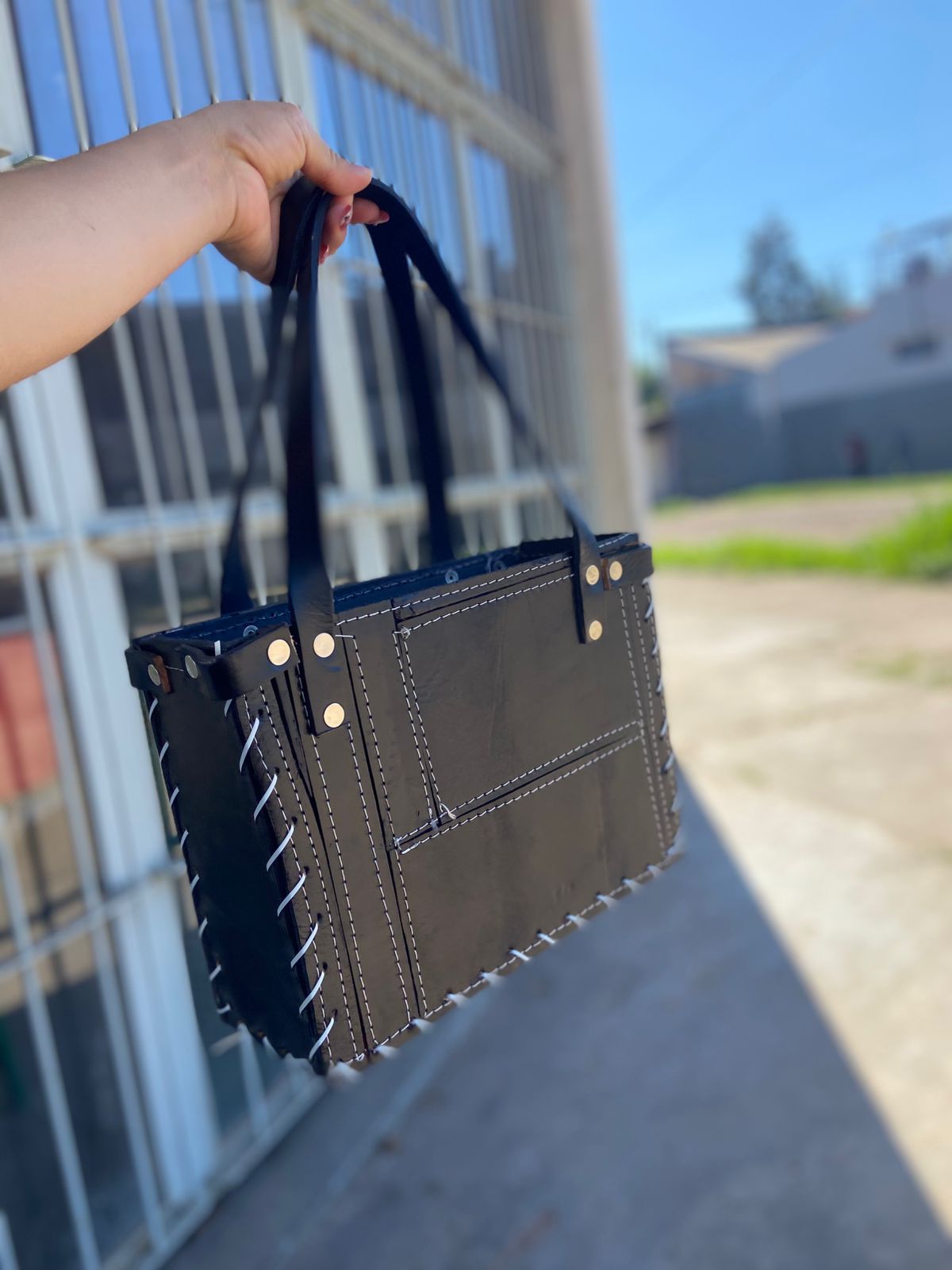 Bolso de cuero genuino hecho con retazos, combinando estilo único y durabilidad. Ideal para uso diario, con un diseño artesanal y atemporal que destaca por su calidad y carácter.