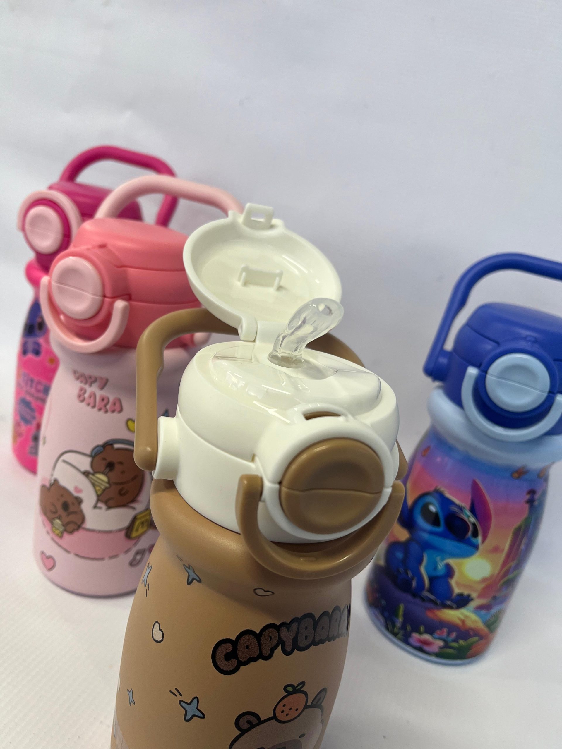 Botella de agua reutilizable de 550ml con diseño elegante, doble pico para fácil acceso y manija ergonómica para transportarla cómodamente. Ideal para deporte, escuela o el día a día.