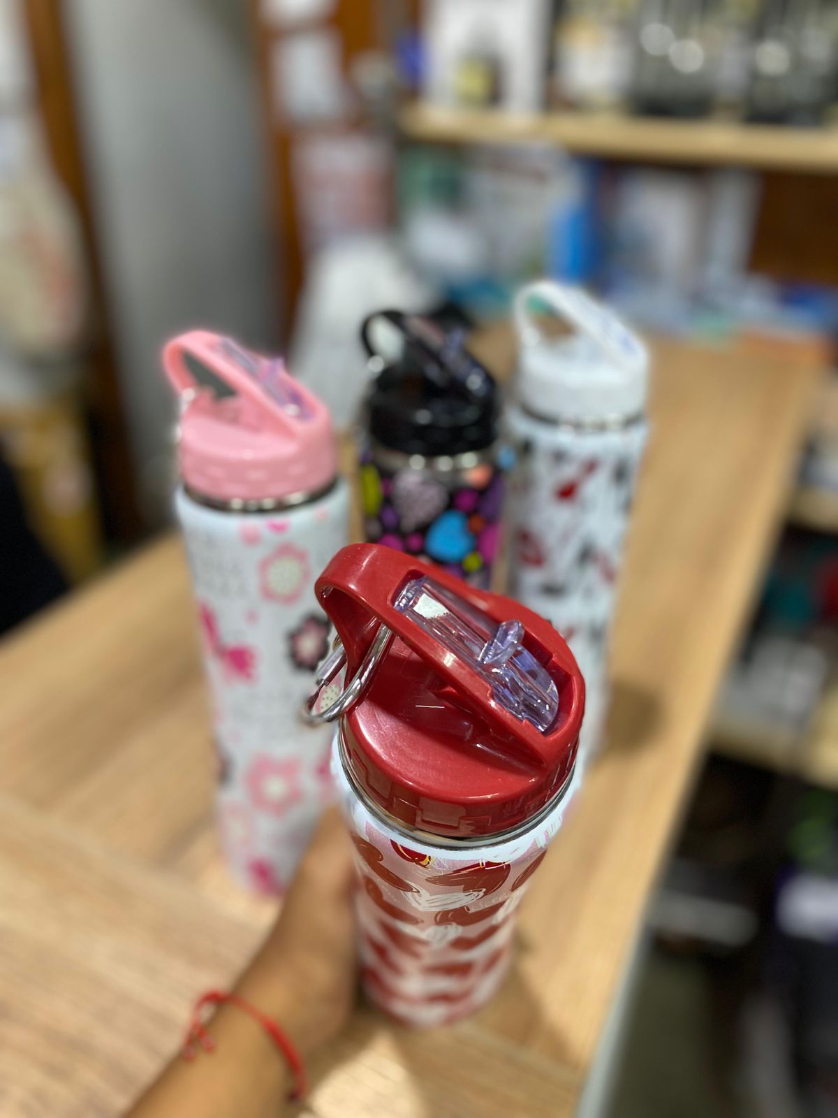 Botellas de agua reutilizables de 600ml con diseños únicos y decorativos. Perfectas para el día a día, el gimnasio o como regalo original. Material duradero y fácil de limpiar.
