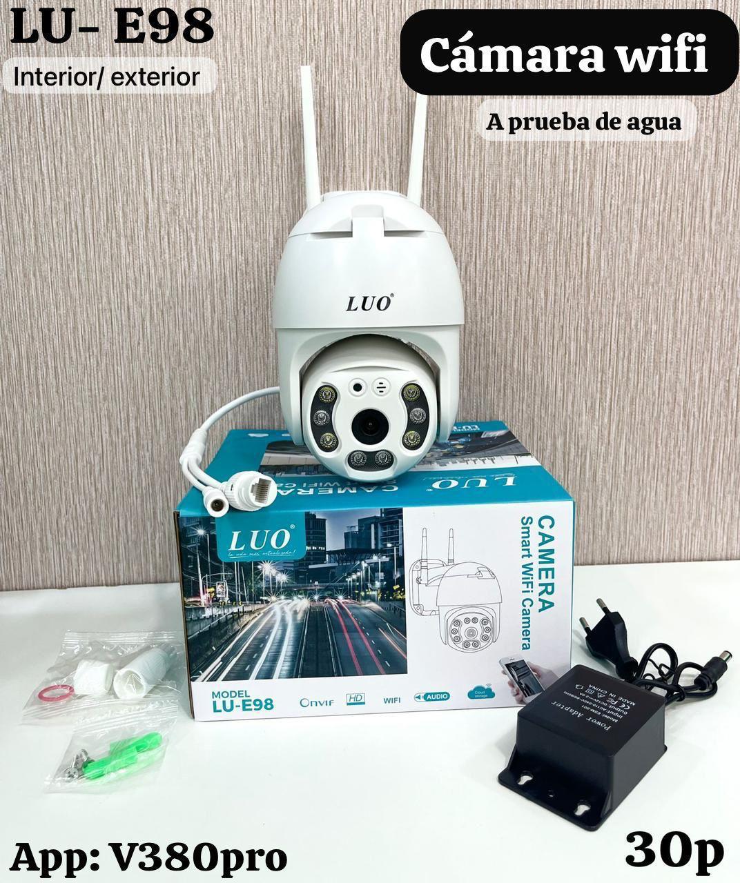 Cámara de seguridad LU-E98 con visión nocturna, detección de movimiento y audio bidireccional. Ideal para vigilancia en interiores y exteriores del hogar o negocio.