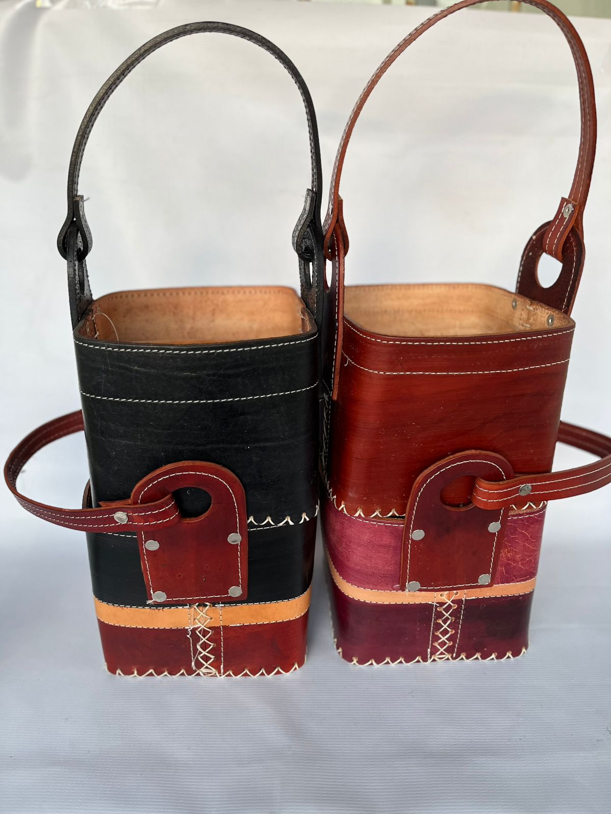 Canastas de cuero 100% genuino, artesanales y elegantes. Perfectas para organizar objetos en el hogar, como joyas, llaves o decoración. Diseño atemporal y duradero.
