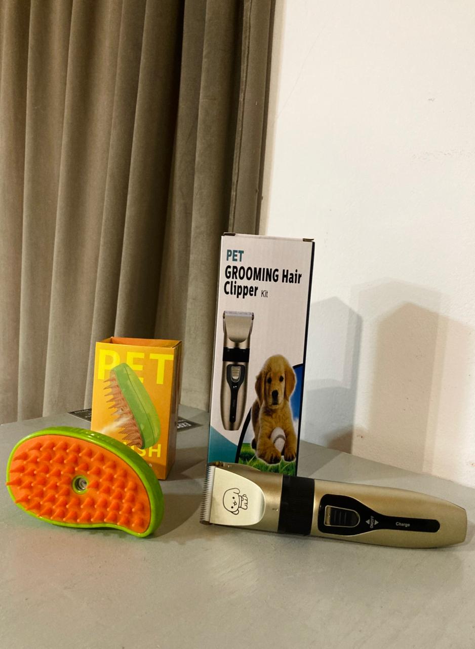 Combo profesional para el cuidado de tu perro. Incluye máquina cortapelos silenciosa y cepillo de vapor para desenredar y dar brillo. Kit completo para grooming en casa.