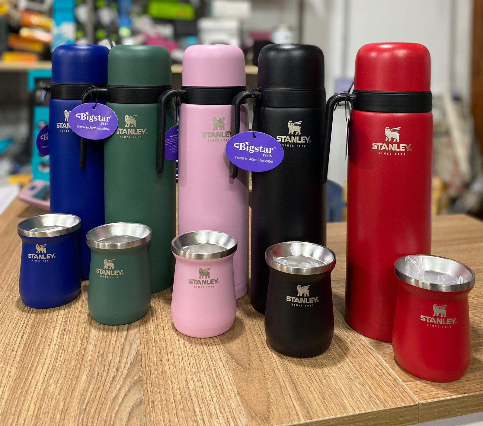 Combo Stanley de 1 litro con mate y bombilla. Ideal para disfrutar tu bebida favorita. Material duradero, colores vibrantes y diseño práctico para el día a día.