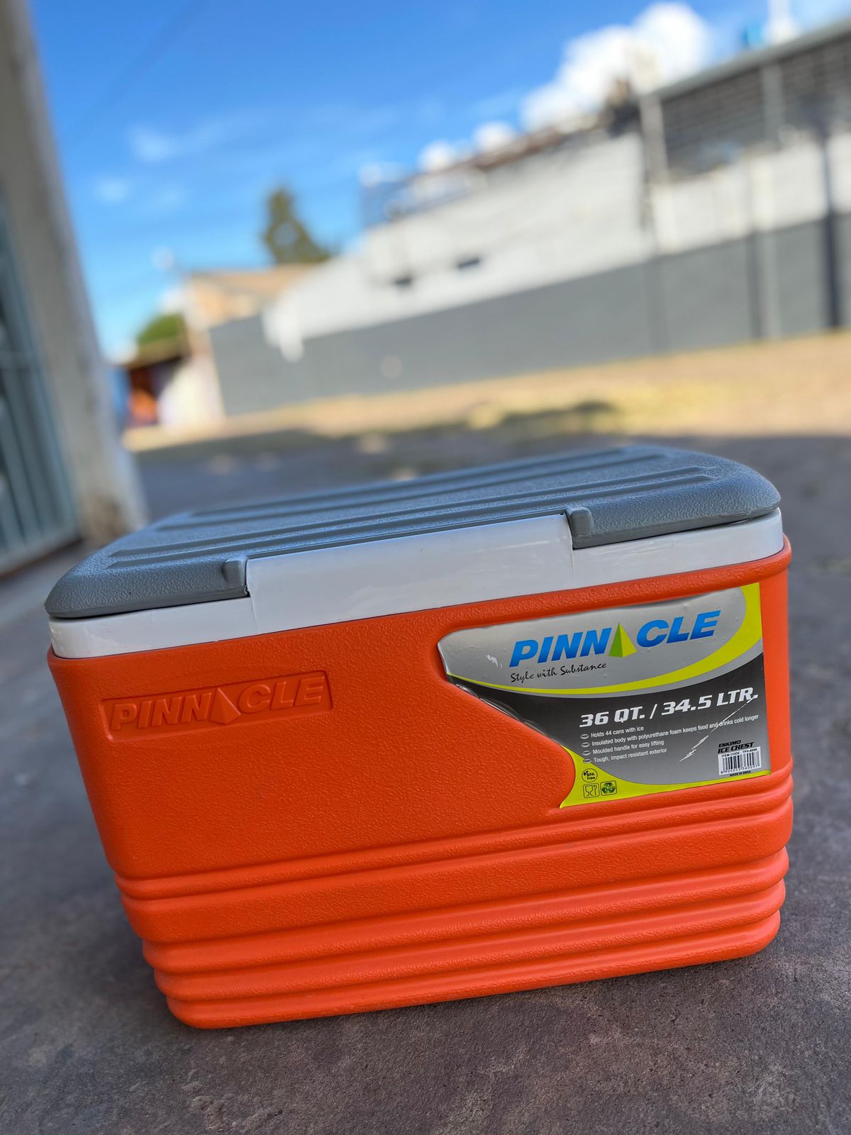 Conservadora portátil de 34.5 litros, ideal para picnic, playa o camping. Disponible en vibrantes colores naranja, celeste y verde manzana. Mantiene tus bebidas y alimentos fríos por horas.