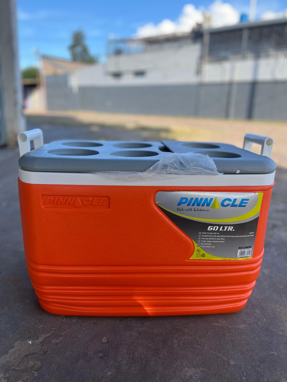 Conservadora portátil de 60 litros con manija para fácil transporte. Ideal para picnic, playa o camping. Disponible en colores verde manzana y naranja. Mantiene la temperatura por horas.