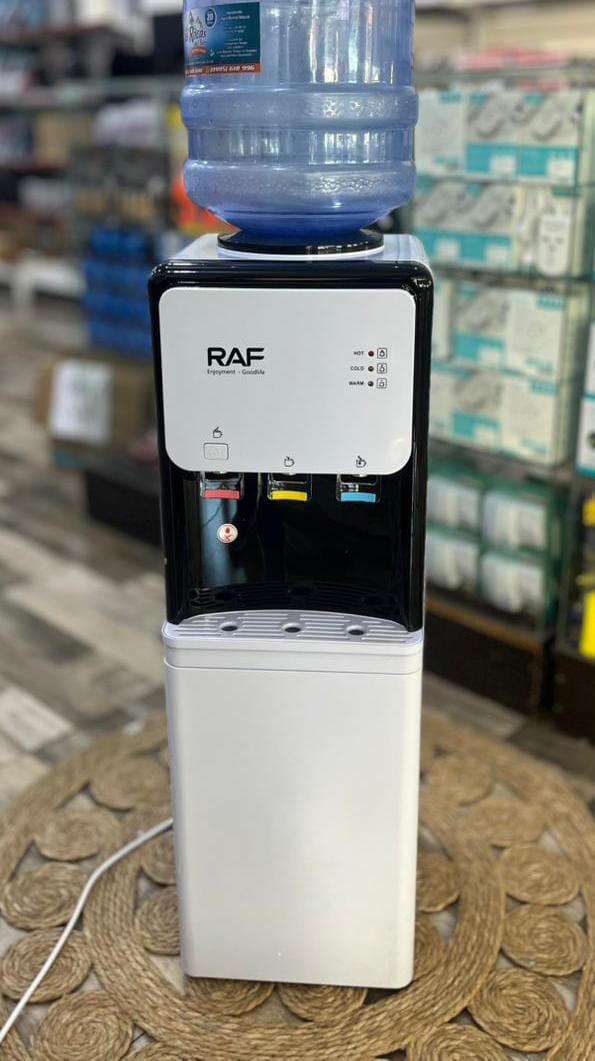 Dispensador de agua inteligente Raf para frío y calor. Ideal para oficina o hogar. Diseño moderno, fácil de usar y mantener. Ahorra espacio y energía.