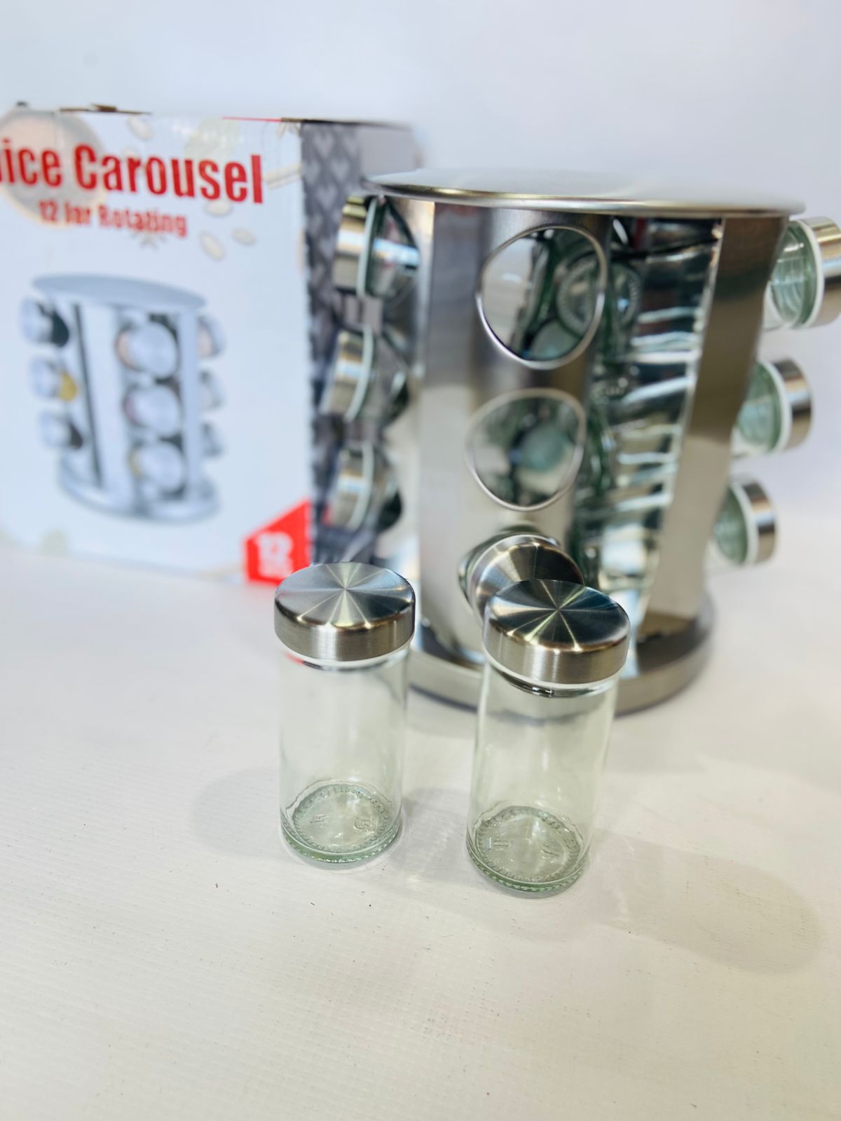 Set organizador de especias con 12 frascos de vidrio y etiquetas. Ideal para cocina, mantiene hierbas y condimentos frescos y accesibles. Diseño funcional y elegante.