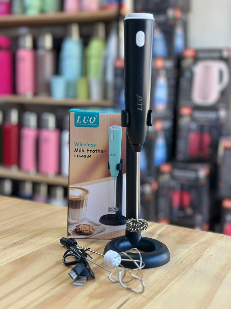 Espumador de leche manual con soporte integrado. Ideal para café, capuchinos y bebidas cremosas. Fácil de usar, limpio y duradero. Perfecto para baristas caseros.
