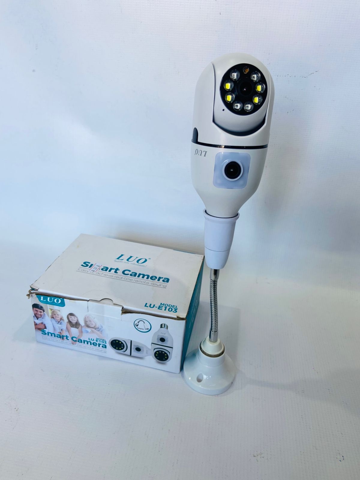 Cámara de seguridad Luo Lu-103 con doble visor, giro 360° PTZ, visión nocturna infrarroja, audio bidireccional, detección de movimiento y alertas a móvil. Almacena en microSD o en la nube. Imágenes en alta definición HD para vigilancia efectiva.
