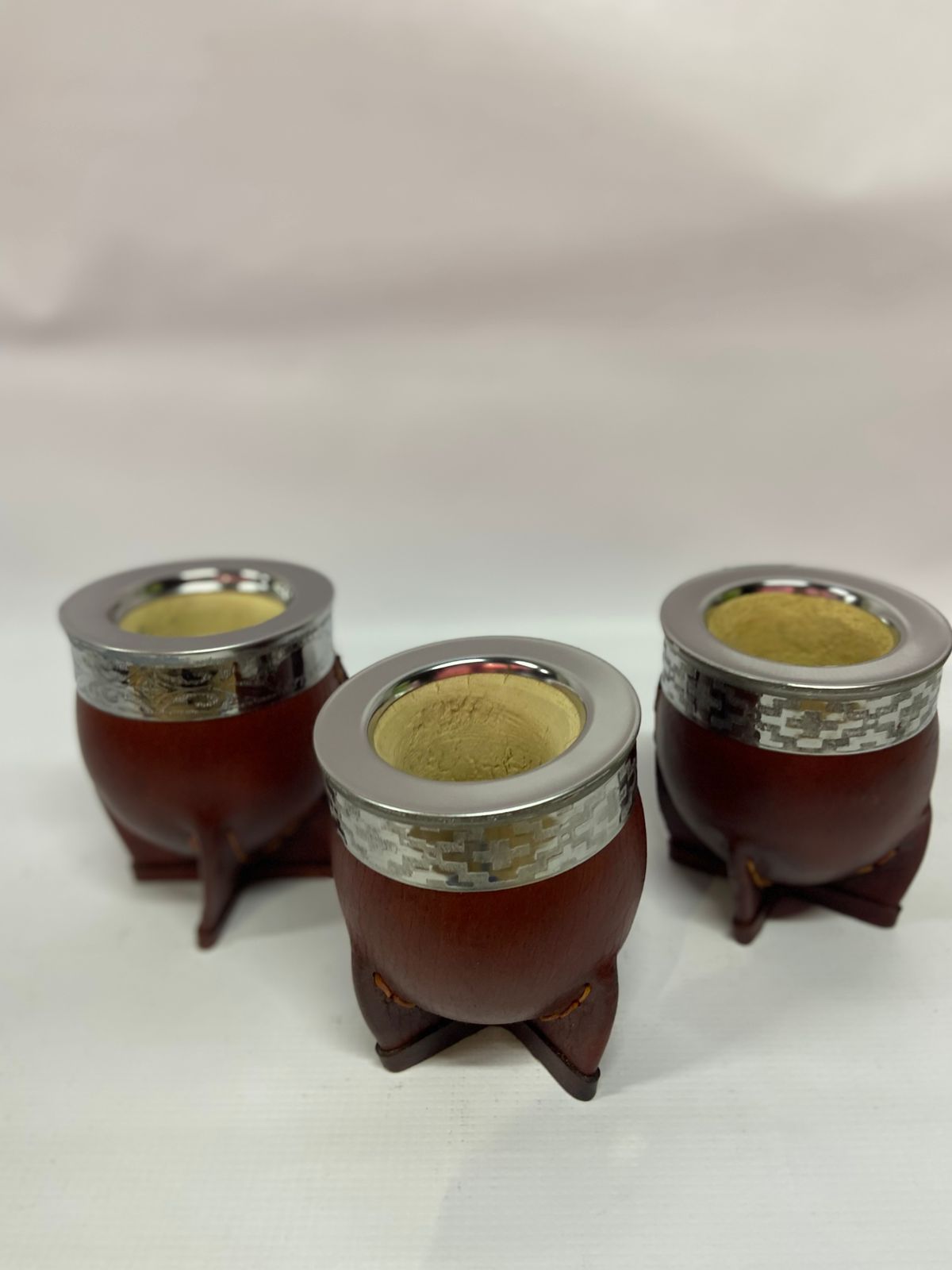 Virola de acero imperial con interior de calabaza y forro de cuero. Artesanía de alta calidad para instrumentos musicales, ideal para músicos exigentes.