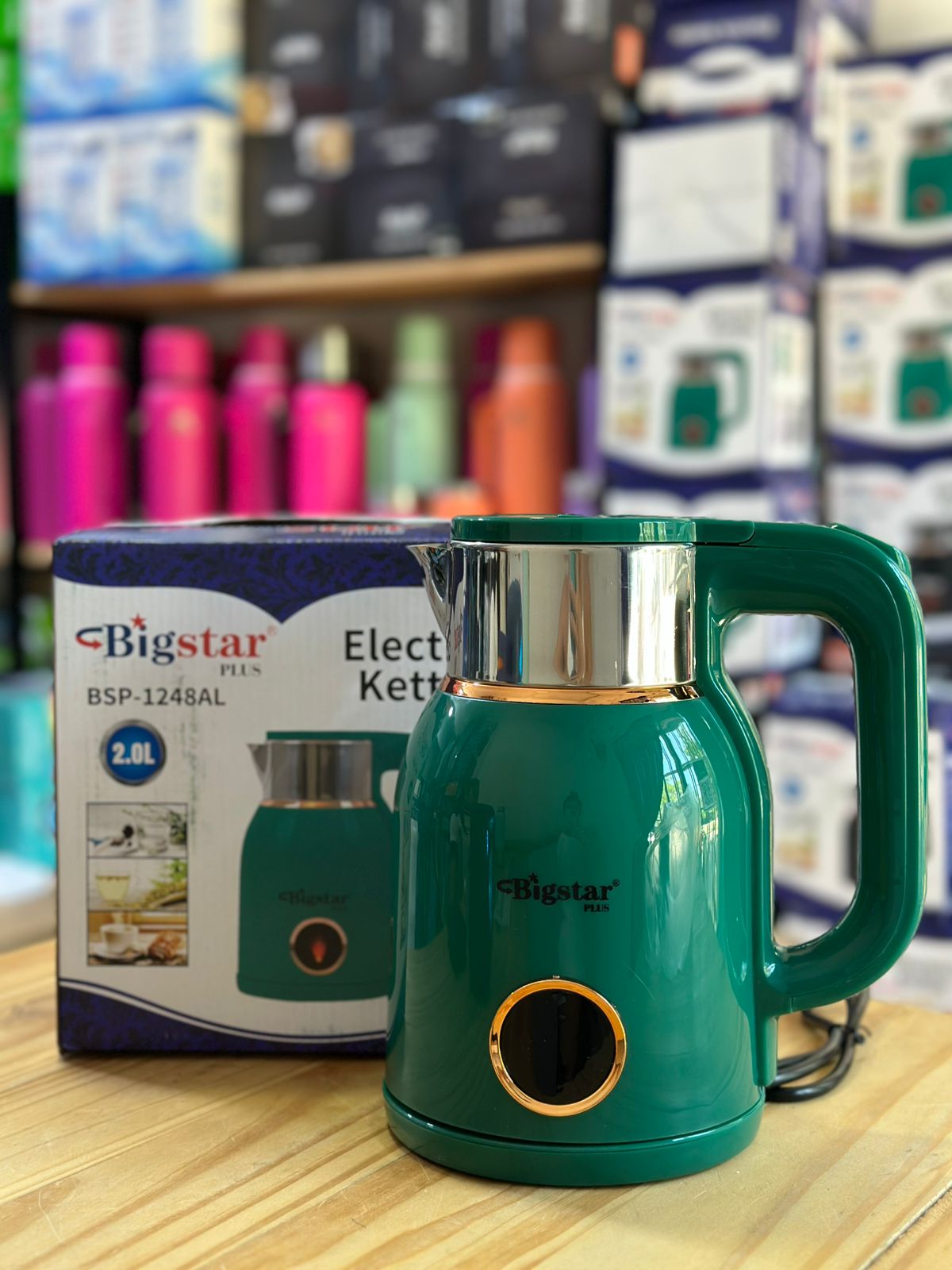 Jarra eléctrica Bigstar para hervir agua rápidamente. Diseño moderno, capacidad generosa y apagado automático. Ideal para té, café o preparaciones instantáneas.