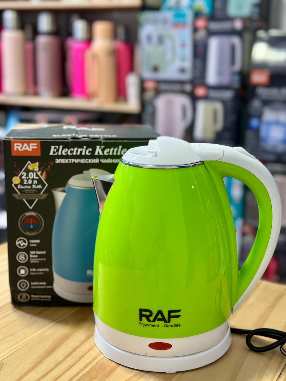 Jarra eléctrica Raf de 1.7L con apagado automático y hervidor rápido. Ideal para té, café o preparaciones instantáneas. Material plástico libre de BPA, segura y eficiente.
