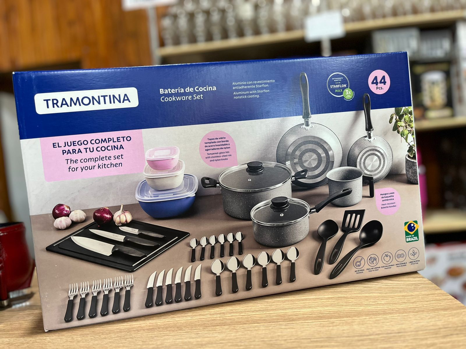 Juego de cocina completo de 44 piezas para niños. Incluye utensilios y alimentos de juguete seguros, fomentando el juego imaginativo y el desarrollo de habilidades motoras.