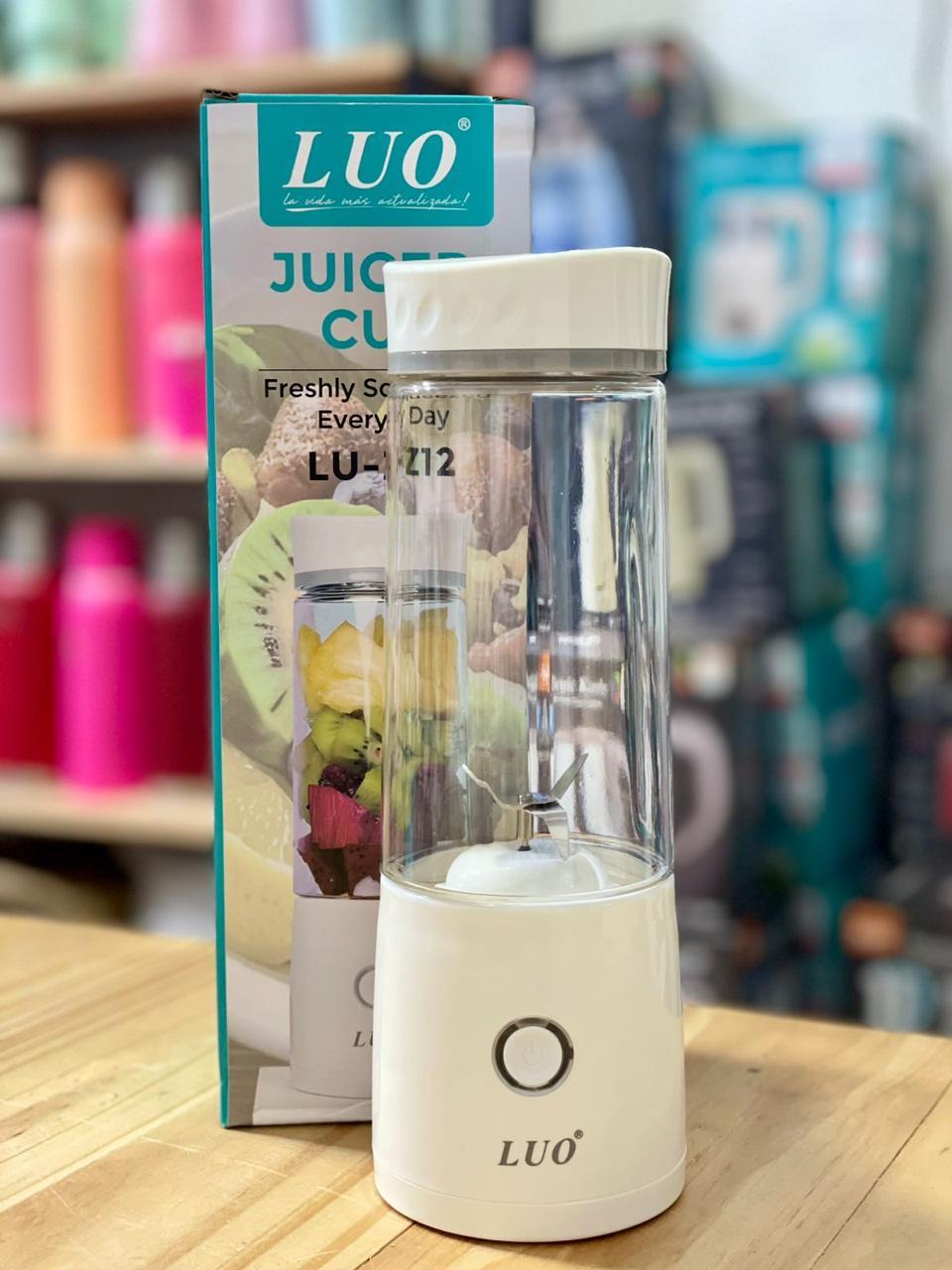 Licuadora portátil Luo, ideal para batidos de frutas frescas como manzana, plátano y sandía. Compacta, recargable y perfecta para llevar a cualquier lugar. Disfruta de bebidas saludables al instante.