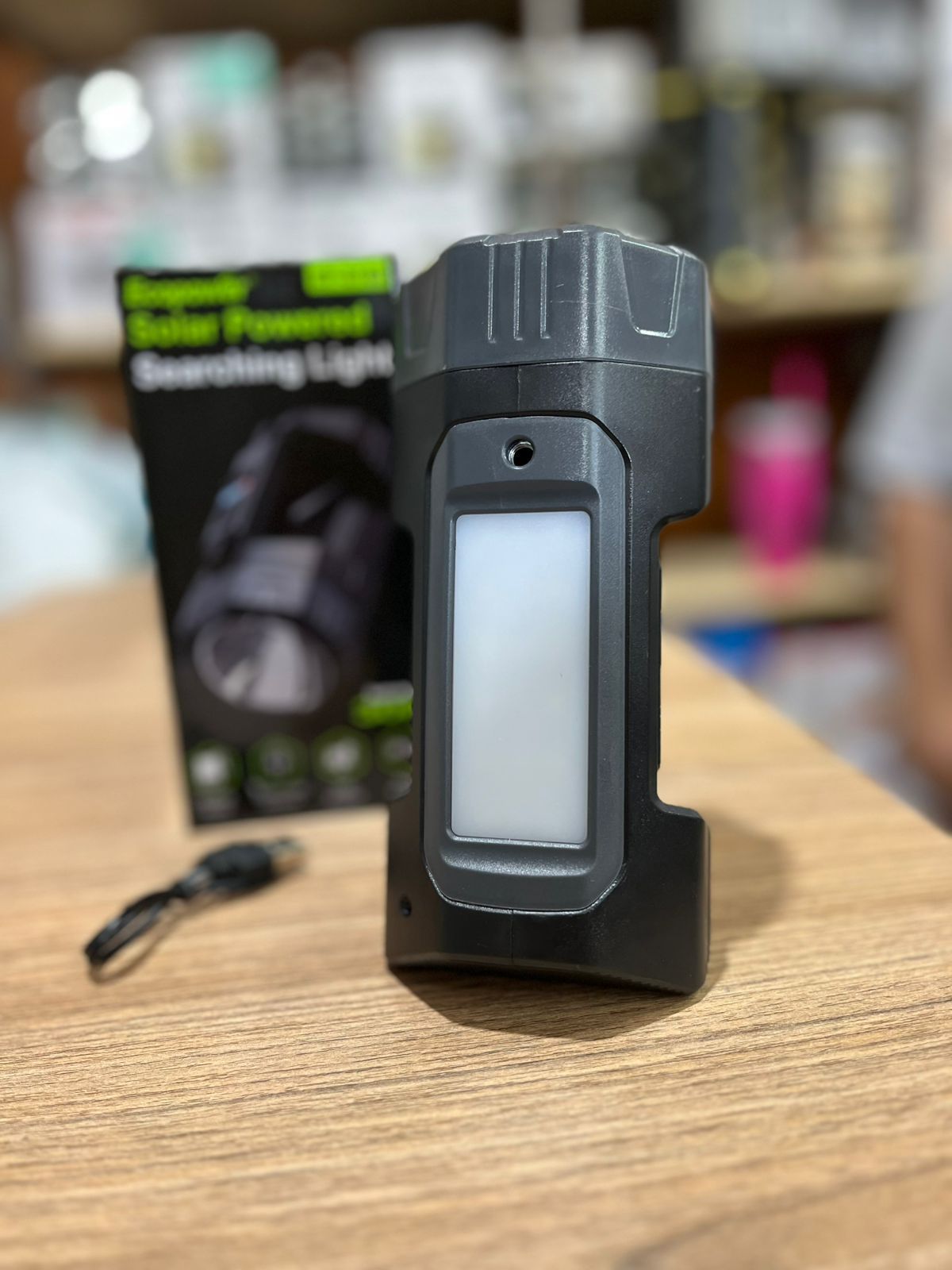 Linterna recargable con panel solar integrado, ideal para camping y emergencias. Ofrece 300 lúmenes de potencia, diseño robusto y autonomía ecológica.