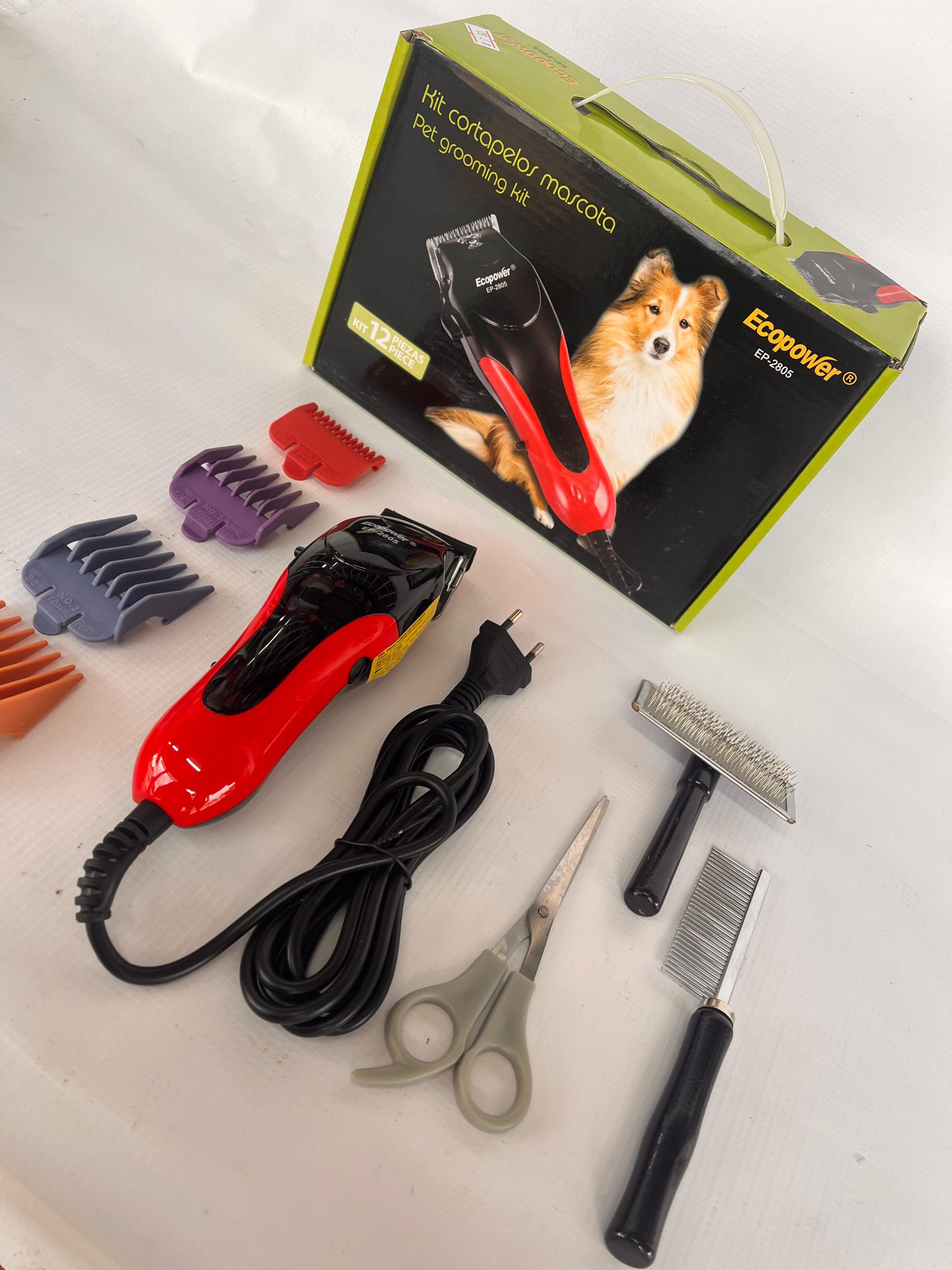 Máquina de corte canino ECOPOWER profesional para peluquería canina. Incluye todos sus accesorios para un corte preciso y seguro de mascotas. Alta calidad y durabilidad.