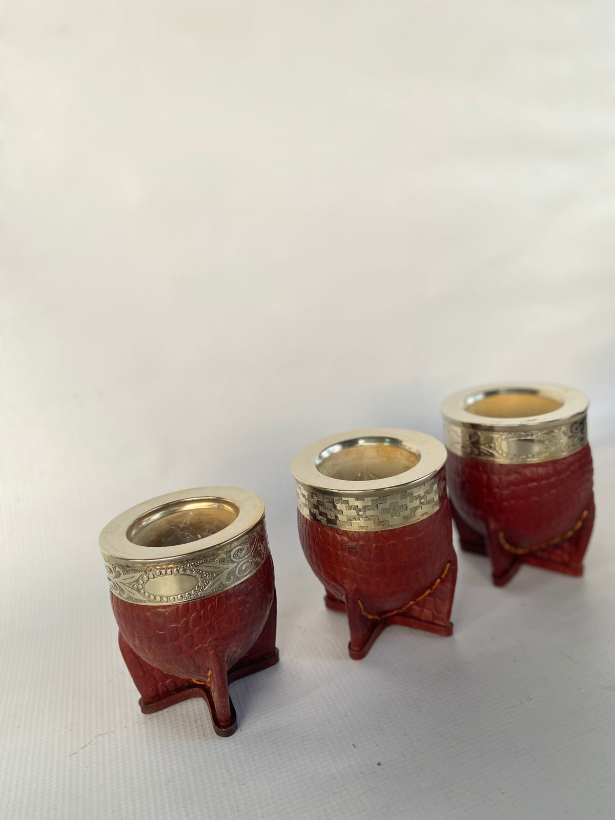 Mate imperial artesanal con calabaza natural, virola de alpaca pura y forro interior en cuero de cocodrilo. Ideal para el mate diario con estilo y durabilidad premium.