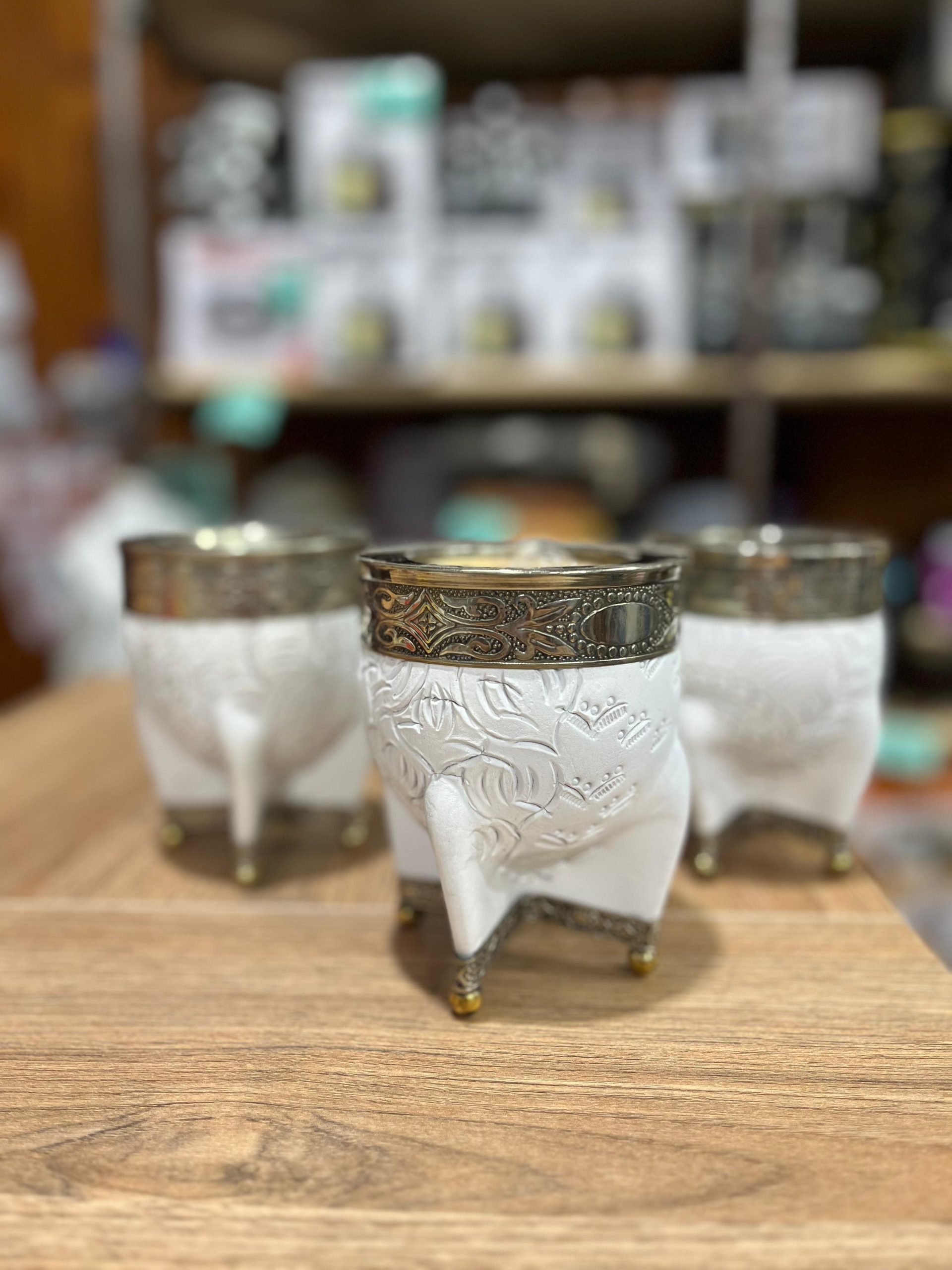 Mate imperial de cuero repujado artesanal con base y virola de alpaca pura. Calabaza natural por dentro. Producto tradicional y decorativo de alta calidad.