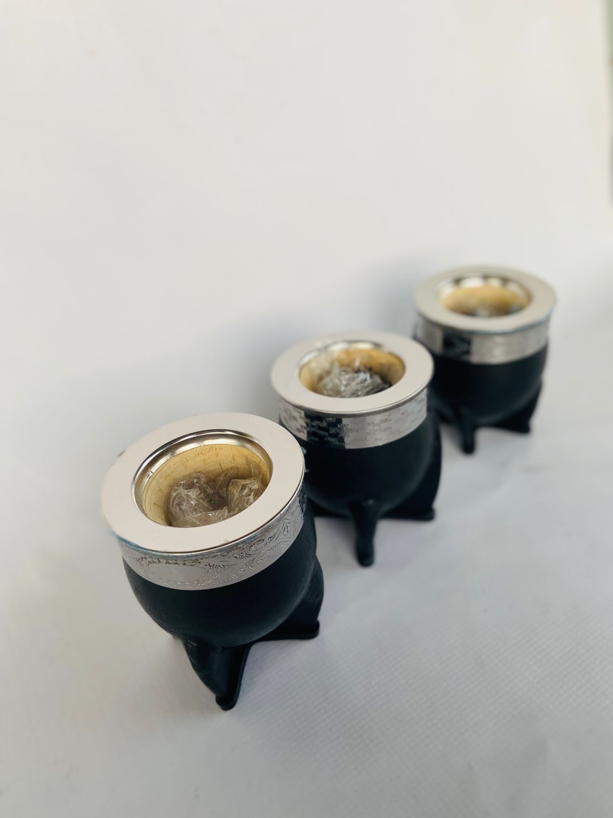 Mate imperial de alta calidad con virola de acero, interior de calabaza y forro de cuero premium. Disponible en colores negro y bordo. Ideal para el mate tradicional con estilo y durabilidad.