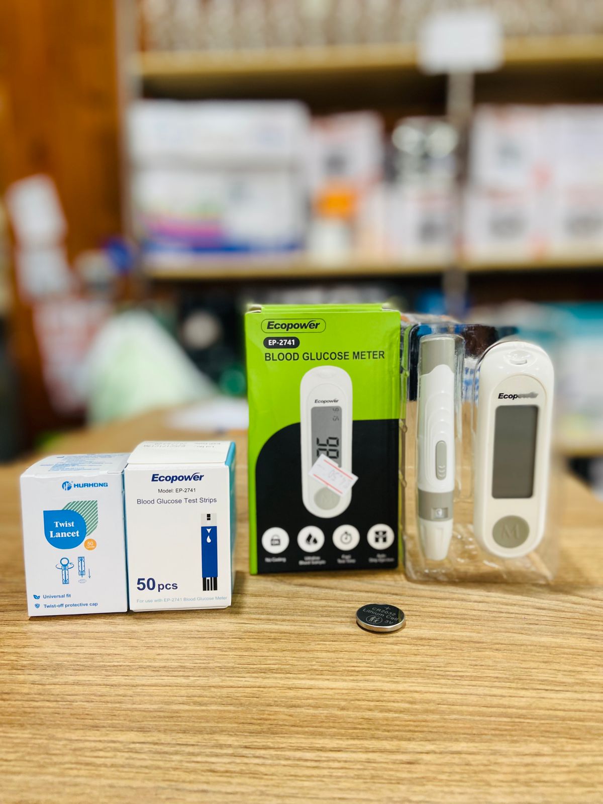 Glucómetro ECO-POWER con tecnología sin codificación. Muestra ultra baja (0.7μL), resultados en 5 segundos, memoria de 500 lecturas y expulsión automática de tiras. Ideal para control diabético preciso y fácil.