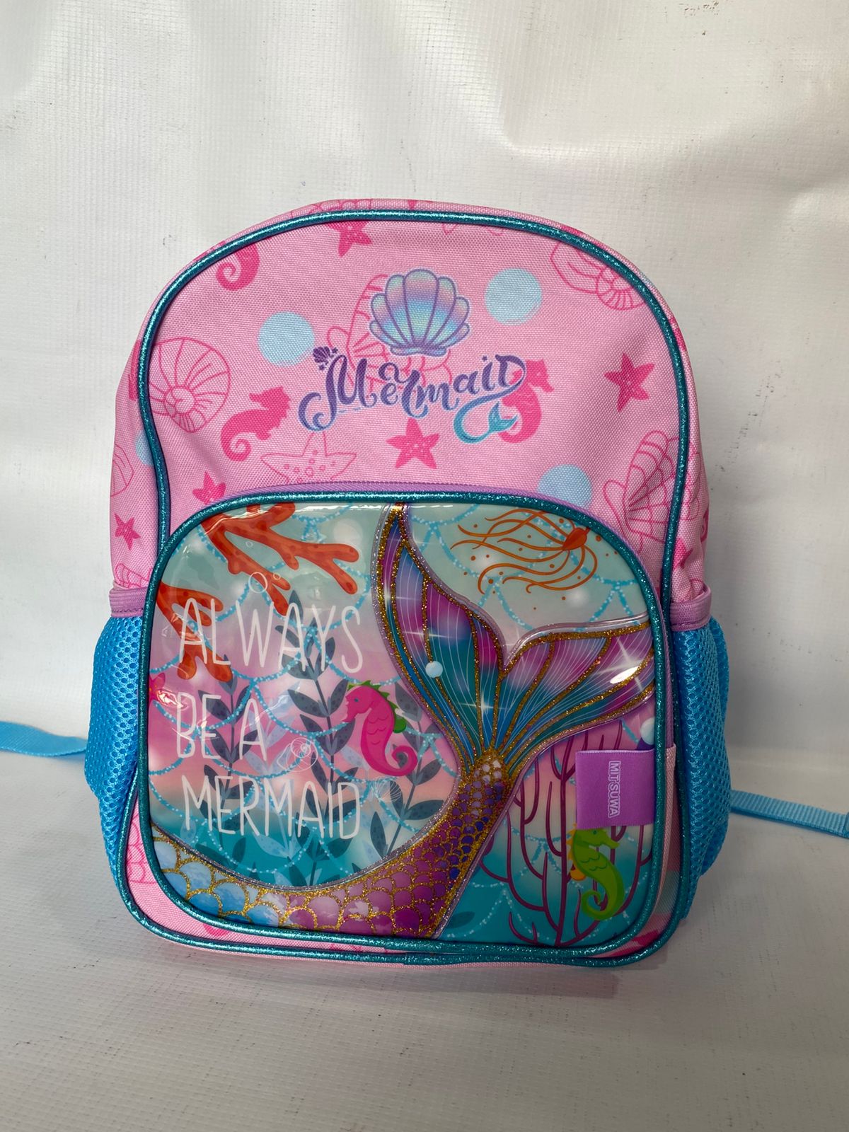 Mochila infantil con diseño de sirena, perfecta para niñas. Compartimento principal, bolsillo frontal y correas acolchadas. Ideal para colegio, excursiones o playa.