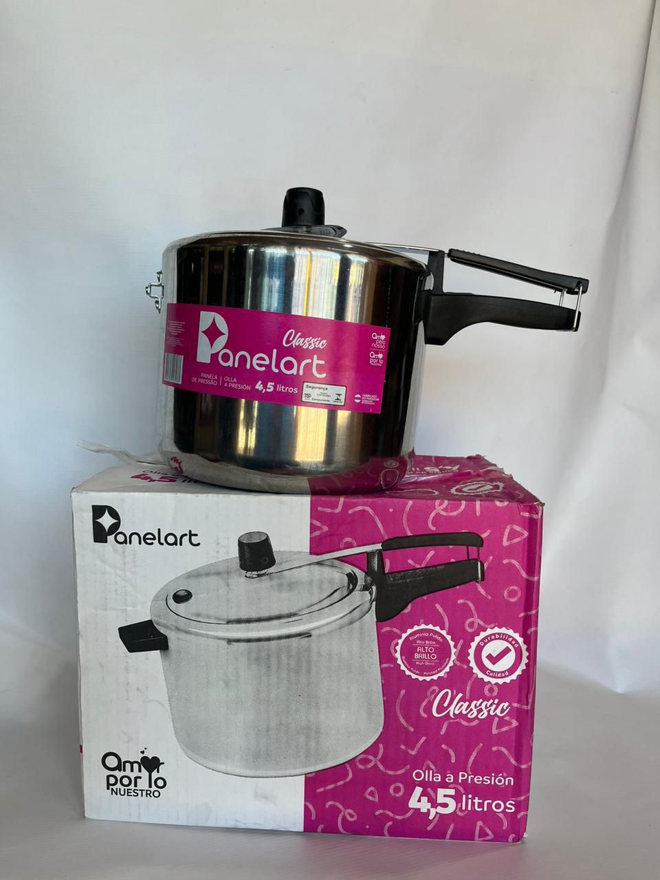 Olla a presión premium de 4.5 litros con tapa de seguridad y válvula de presión. Ideal para cocinar rápido y conservar nutrientes. Calidad garantizada.