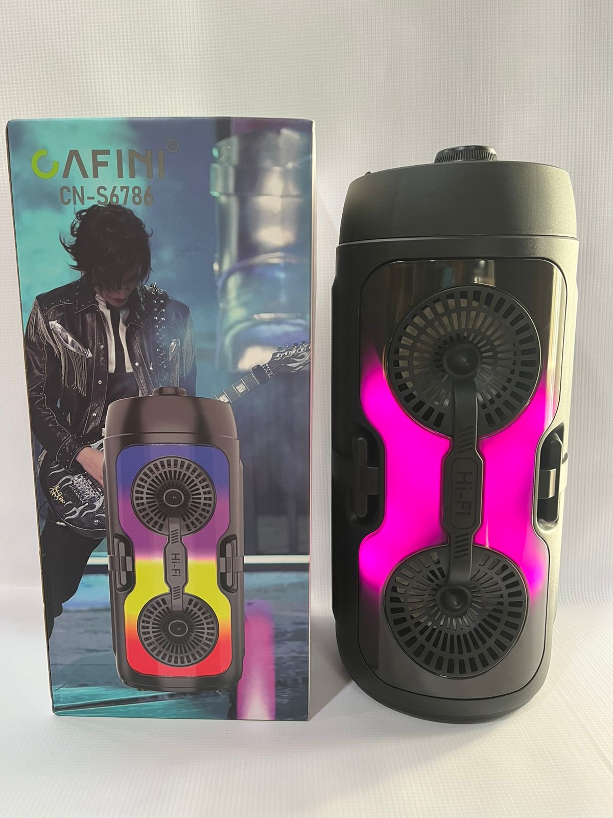 Disfruta de sonido potente con el Parlante CAFINI 6786. Equipado con Bluetooth, control remoto, ajuste de volumen y ecualizador, ofrece una experiencia de audio versátil. Ideal para cualquier ambiente, conecta y personaliza tu música fácilmente.