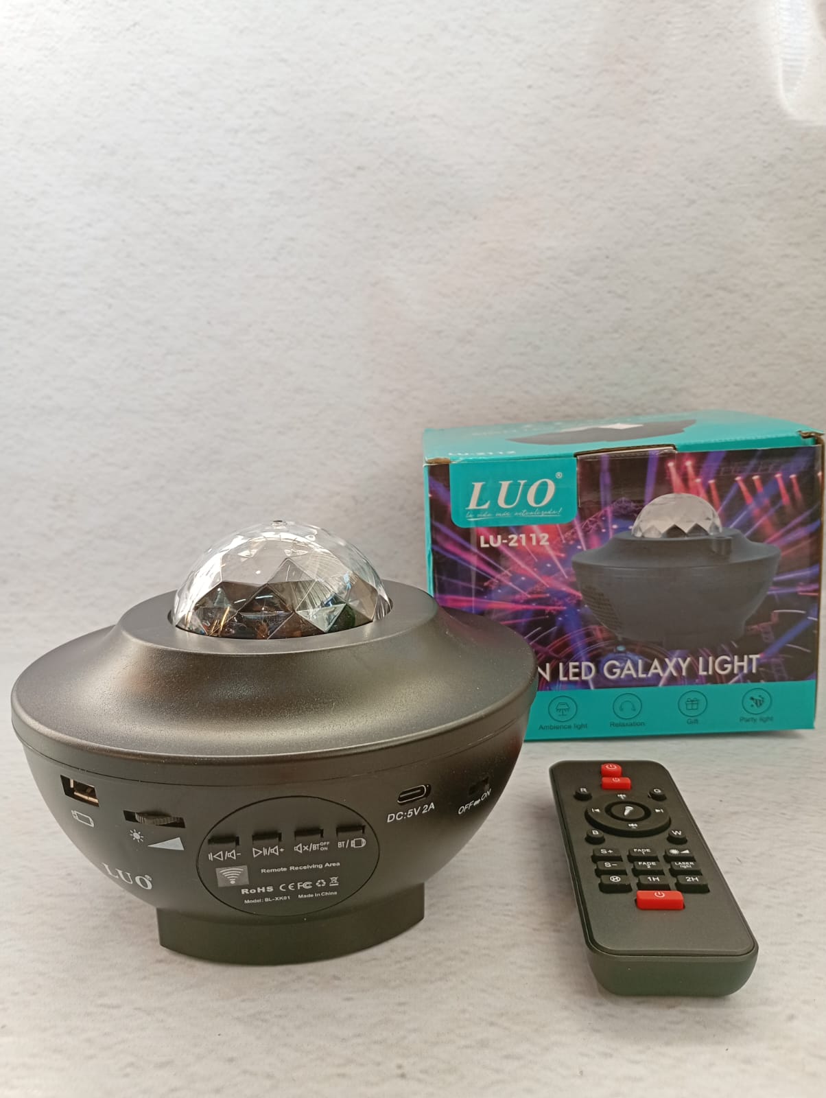 Sumérgete en el sonido y la luz con el Parlante galaxia LUO 2112. Disfruta de audio potente, vibrantes luces de colores y efectos láser espectaculares. Controla todo con su remoto y reproduce tu música vía USB. ¡Crea una atmósfera única en cualquier espacio!