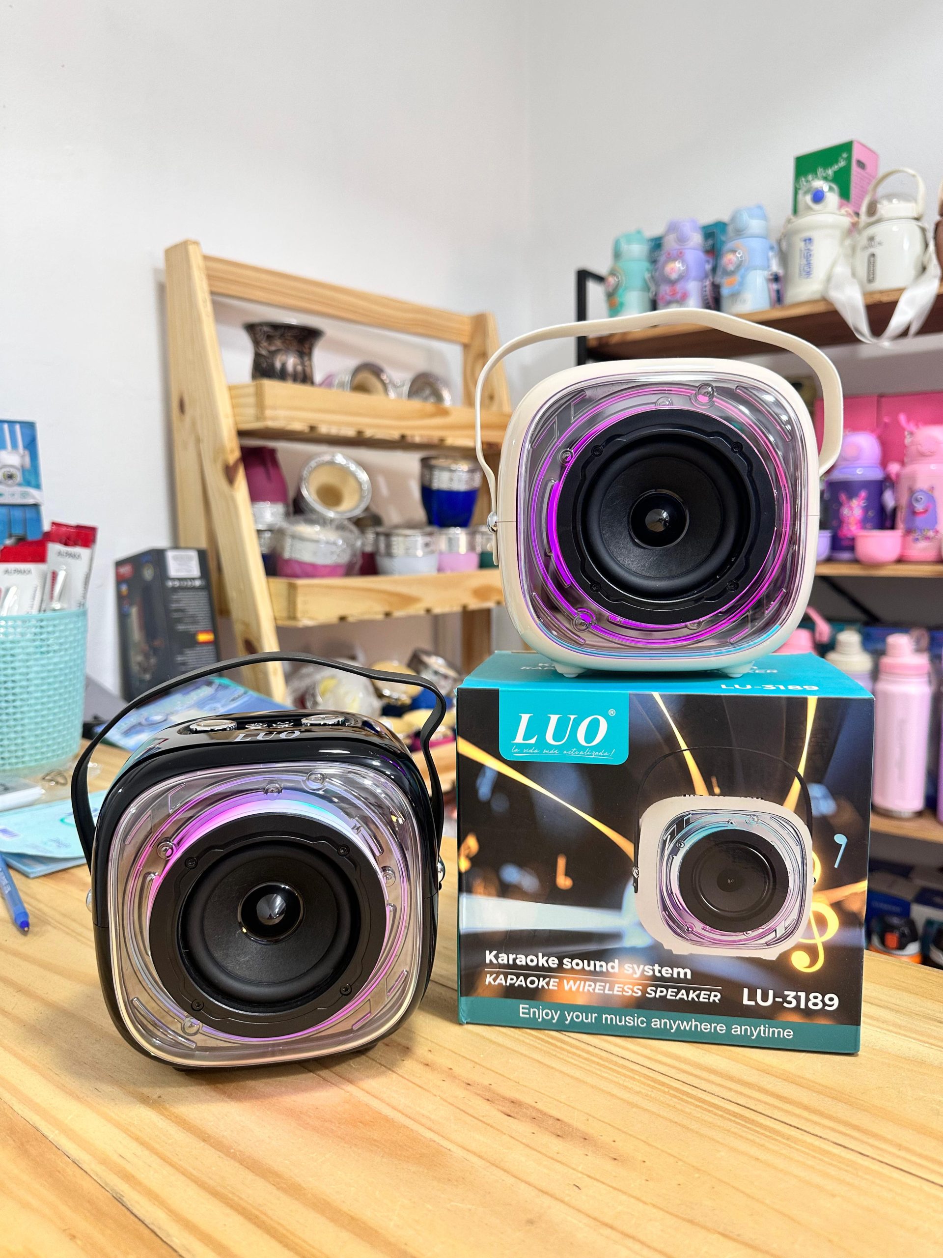 Parlante Luo con sonido potente y claro, ideal para fiestas y reuniones. Conexión Bluetooth, batería recargable de larga duración y diseño portátil.