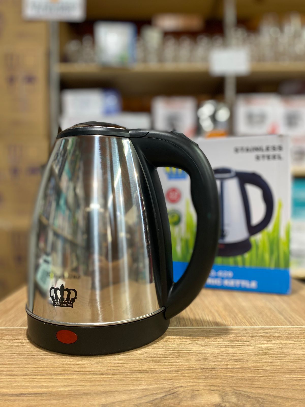 Pava eléctrica de acero inoxidable con capacidad de 2 litros. Calentamiento rápido y seguro, ideal para té, café y preparaciones calientes. Fácil limpieza y diseño duradero.