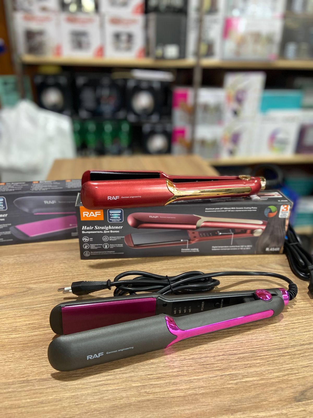 Plancha de pelo RAF con placas de cerámica/turmalina para alisado perfecto. Control digital de temperatura (140°C-200°C) y cable giratorio 360°. Elimina el frizz y protege tu cabello.