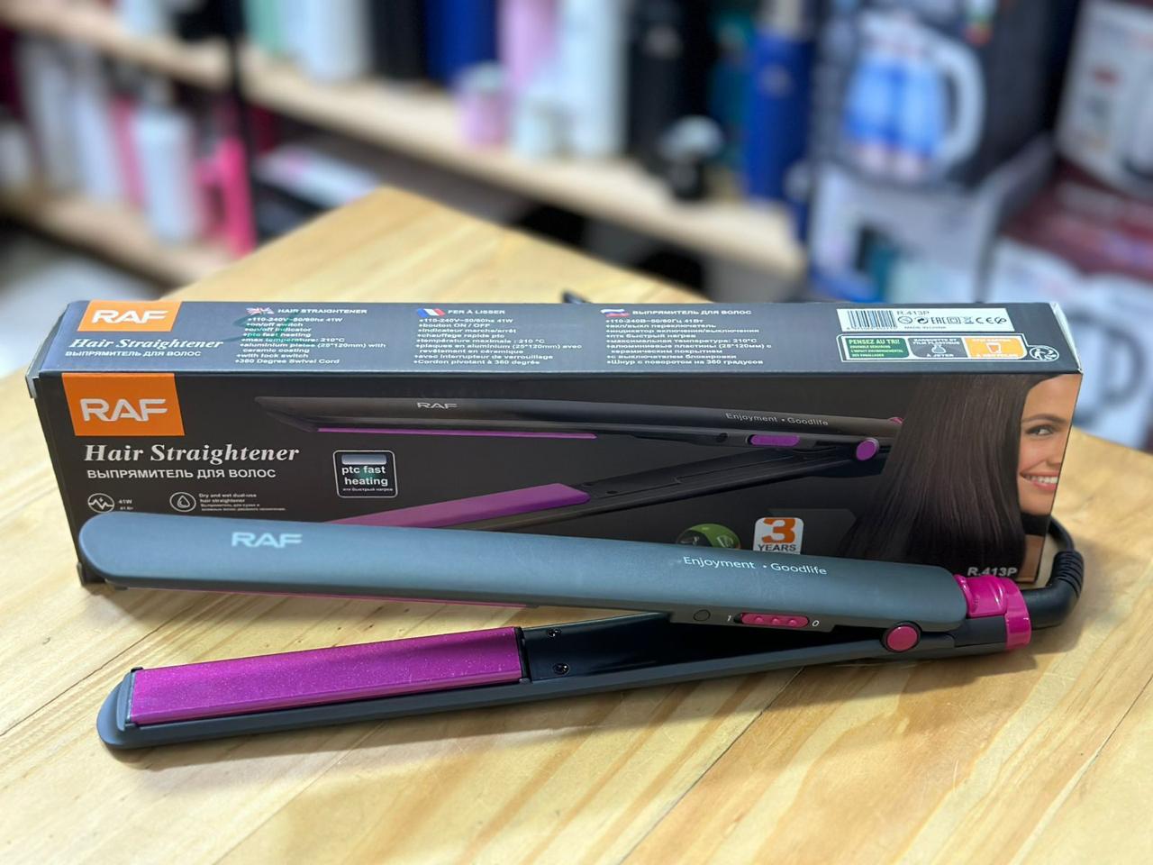 Planchita Raf para el cabello, ideal para crear peinados lisos y con volumen. Ligera, compacta y de calentamiento rápido. Perfecta para uso diario y viajes.