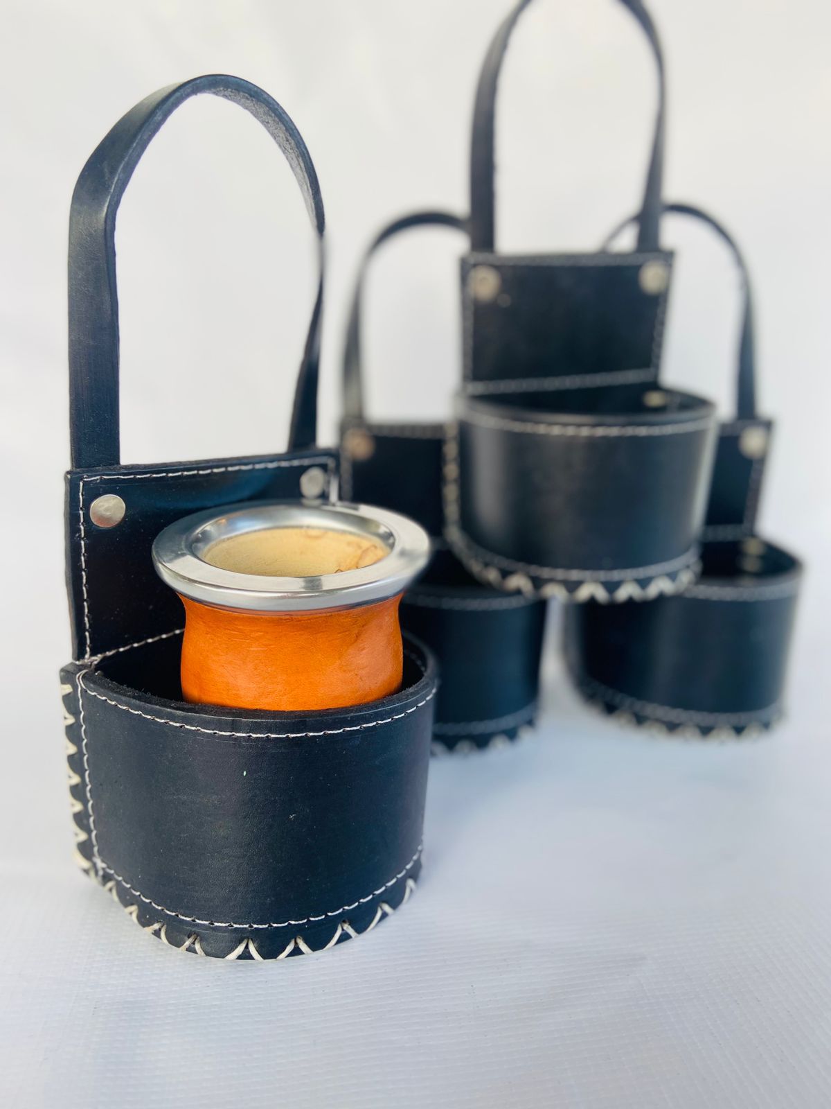 Porta mates de cuero genuino 100% para mate y bombilla. Organiza y transporta tu equipo de mate con estilo y durabilidad. Accesorio tradicional y funcional.