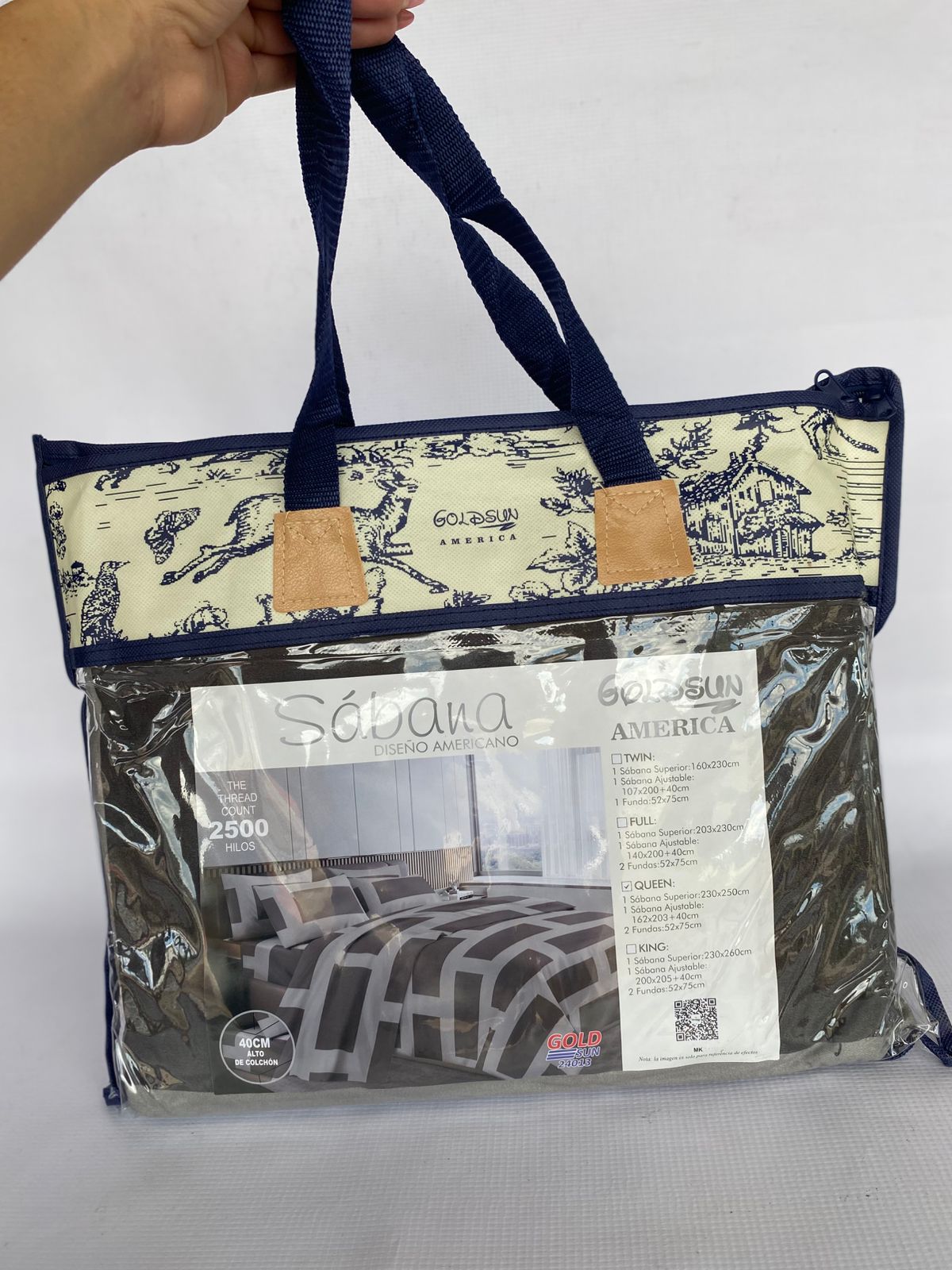 Sábanas maletín Goldsun para cama de 2 plazas. Juego completo (fitted, plano y fundas). Tela suave y transpirable, fácil de guardar en su práctico estuche. Calidad garantizada.