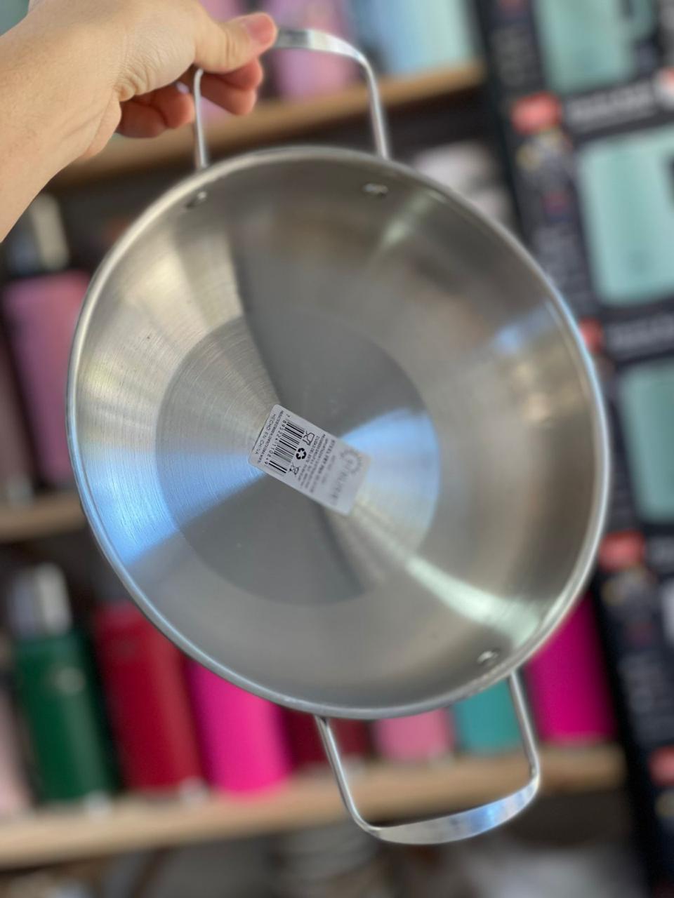 Sartén de acero inoxidable profesional, ideal para cocinas de inducción y todo tipo de cocinas. Distribución uniforme del calor y mango ergonómico resistente.