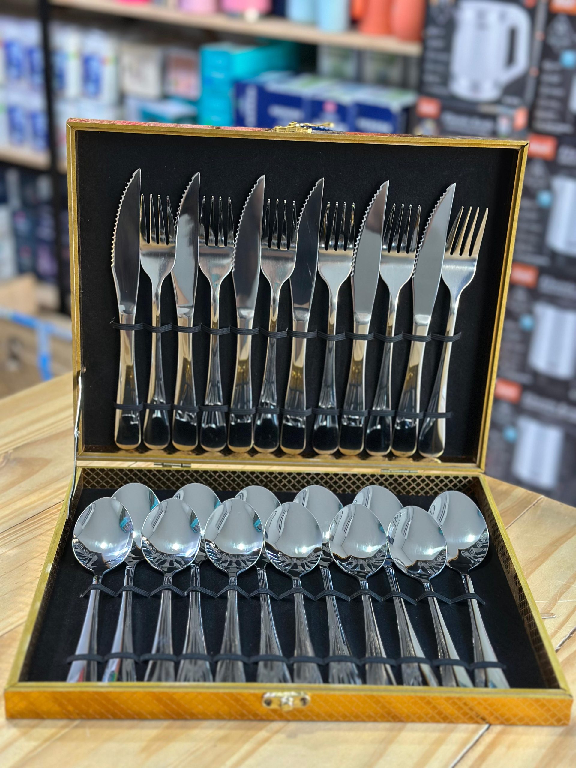 Set de cubiertos premium de 24 piezas, ideal para 6 personas. Acero inoxidable de alta calidad, diseño elegante y duradero para tu mesa. Perfecto para eventos y uso diario.